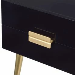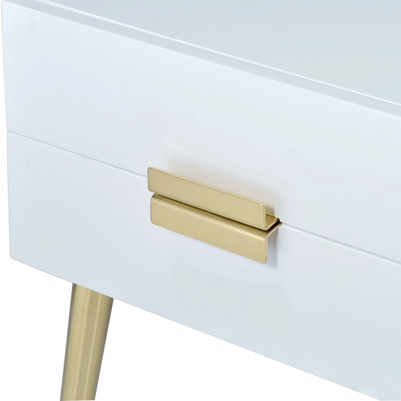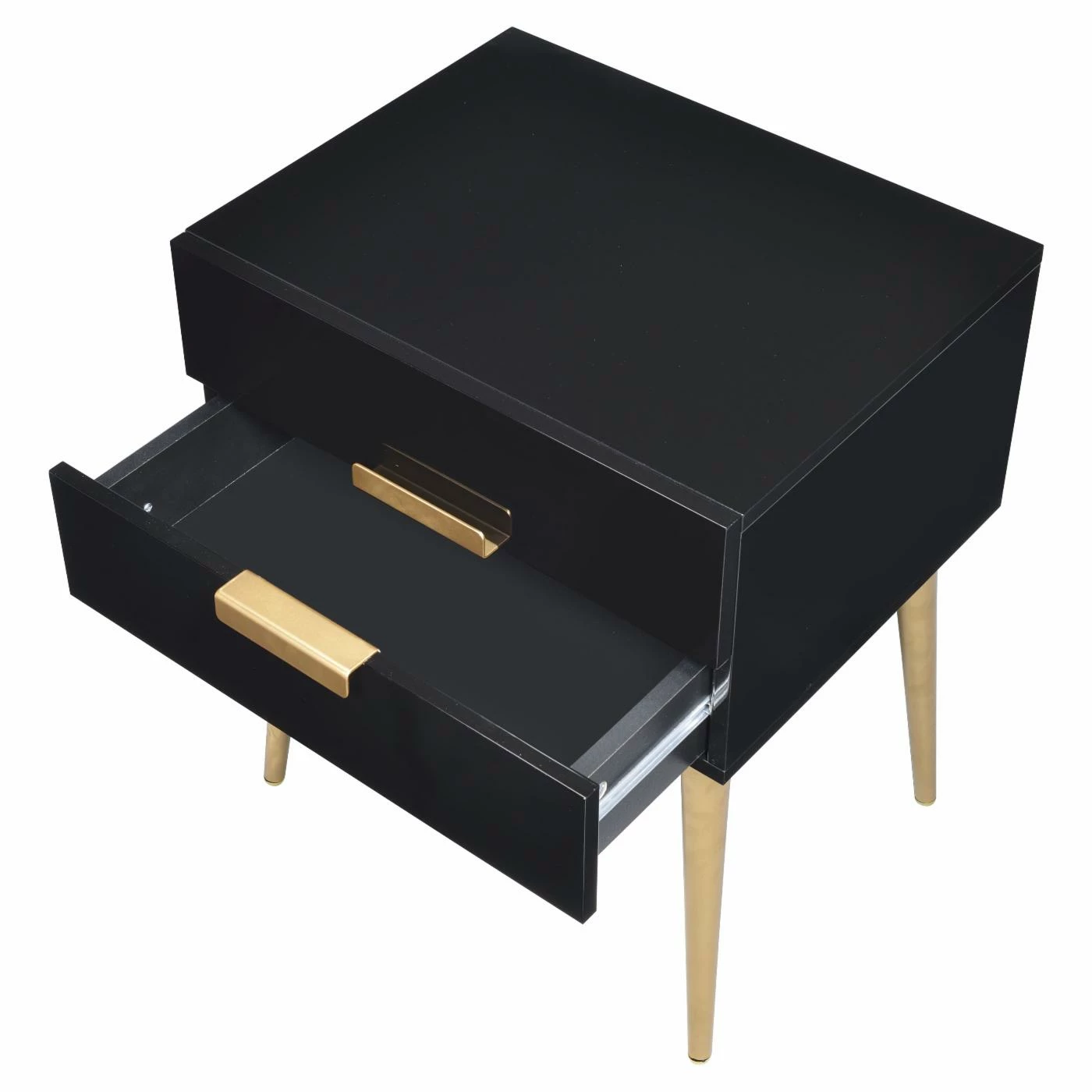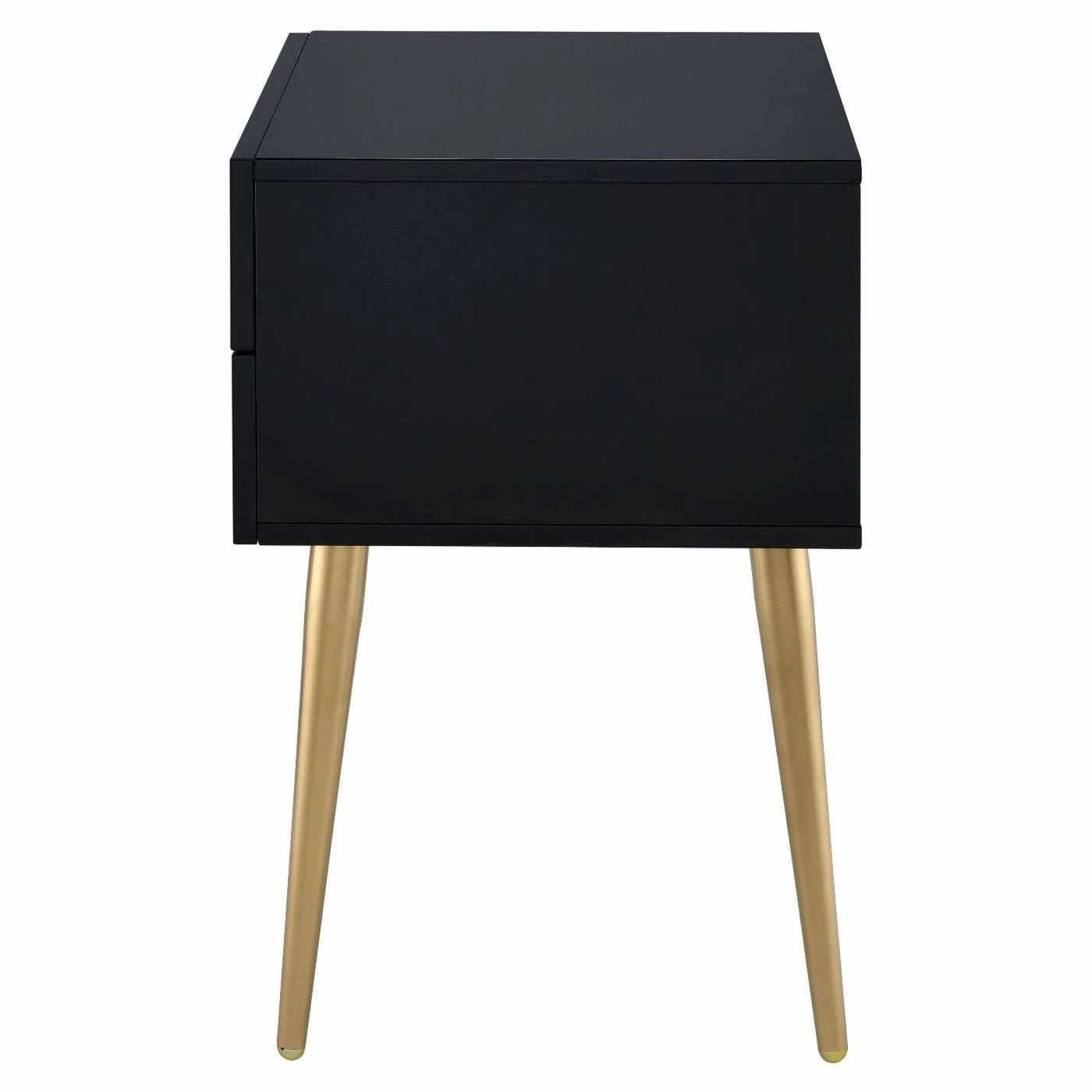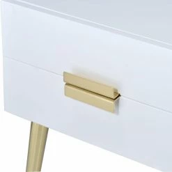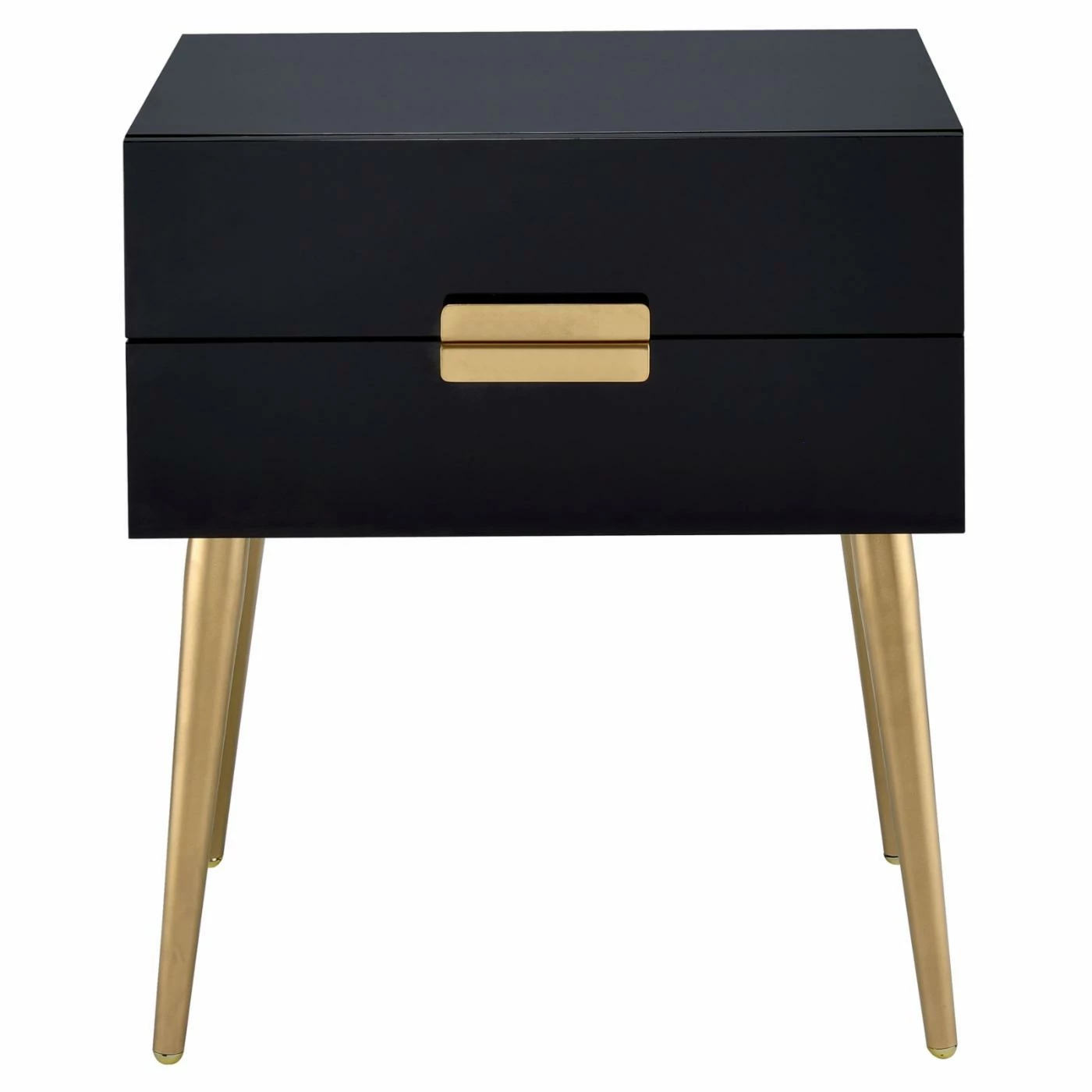 Mid-century modern meets glam with the Acme Furniture Denvor End Table, highlighted with gold tapered legs and gold-finished hardware. This ultra-modern end table comes in your choice of available finish to craft the ideal look to your chic living space or bedroom. Two drawers offer hidden storage for accessories, clothing, and other essentials.