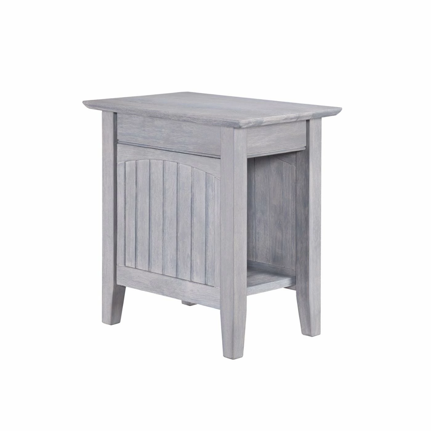 The cottage style AFI Furnishings Nantucket Chair Side Table in driftwood gray finish offers a convenient space to set aside a remote control and refreshments while also stashing away a few magazines or your favorite blanket. The narrow design is ideal for placement next to a chair or sofa, and yet the open storage compartment makes the most of its compact footprint. Eco-friendly hardwood construction is guaranteed to last and the tongue and groove, beadboard details are positively timeless. Some assembly is required.