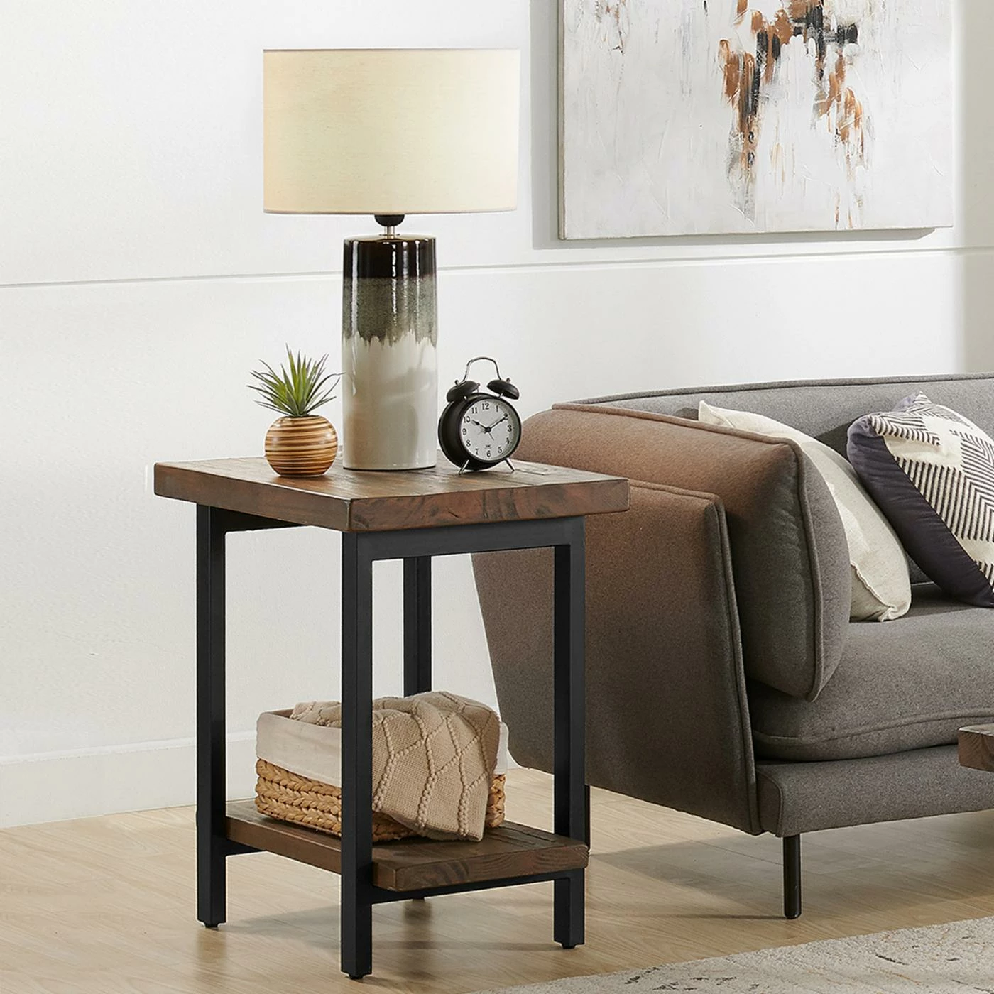 Hot Sale β€οΈ Rectangle End Tables & Side Tables Alaterre Furniture Pomona Metal And Wood End Table – Rustic Natural π