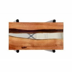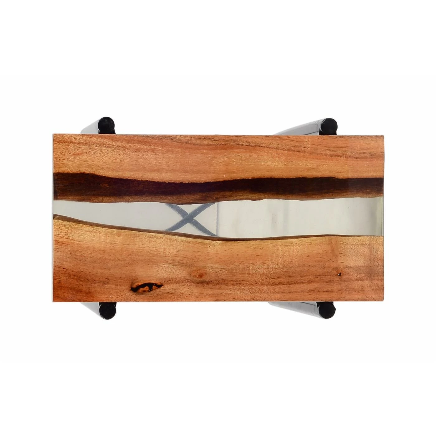 Make your own statement with this gorgeous Acacia Wood and Acrylic table collection. The photos do not do this justice. Each piece is unique; yours will vary from the photo in the way that each piece of wood is uniquely paired and the acrylic set between the pieces. The acrylic flows between the pieces showing even more of the wood’s detail.