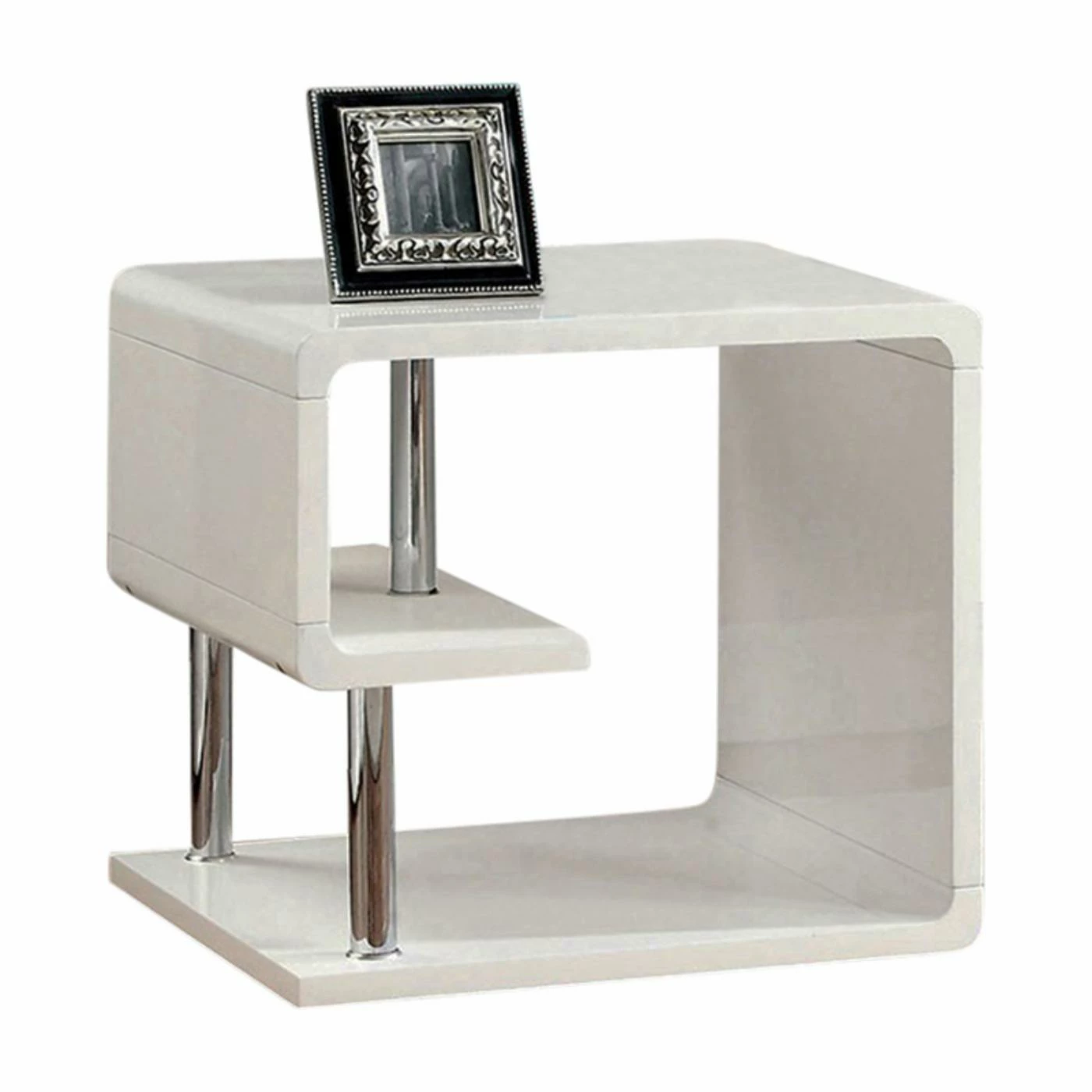 Bold, modern lines contribute to the Benzara Ninove I Contemporary End Table being a showstopper in your living room. Its sculptural white wood frame is topped in a glossy lacquer for a sleek feel. Gleaming chrome supports pair becomingly with the wood. This end table makes a fetching companion for your favorite chair or sofa.