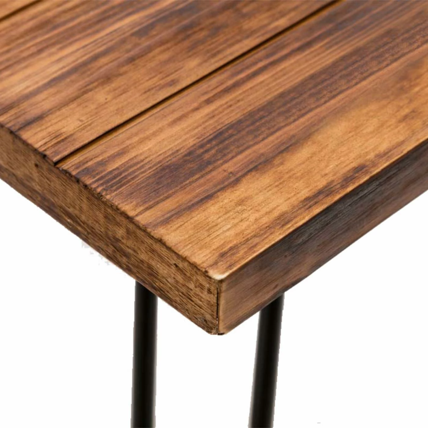 Distinctive yet adaptable, the Boraam Leonardo End Table complements your space but doesn’t detract from your decor. This living room essential features a weathered fir wood tabletop supported by black iron hairpin legs, resulting in a style-savvy, reclaimed look. Compact in form, this end table is the perfect size for keeping a cup of tea close by your favorite chair or for displaying framed photos or other favorite pieces. Assembly requires simply snapping the table legs into place, and the legs are conveniently foldable for easy moving and storing.