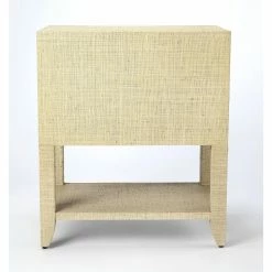 Go with a superior small-storage option and choose the Butler Specialty Amelle Raffia End Table. This raffia-covered end table offers a surprising amount of space with its crescent-handled, pull-out drawers and open shelf. It also comes in your choice of available colors, making it a perfect option next to your sofa or bed.