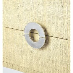 - Built from natural raffia, aluminum, plywood, and engineered wood
