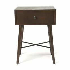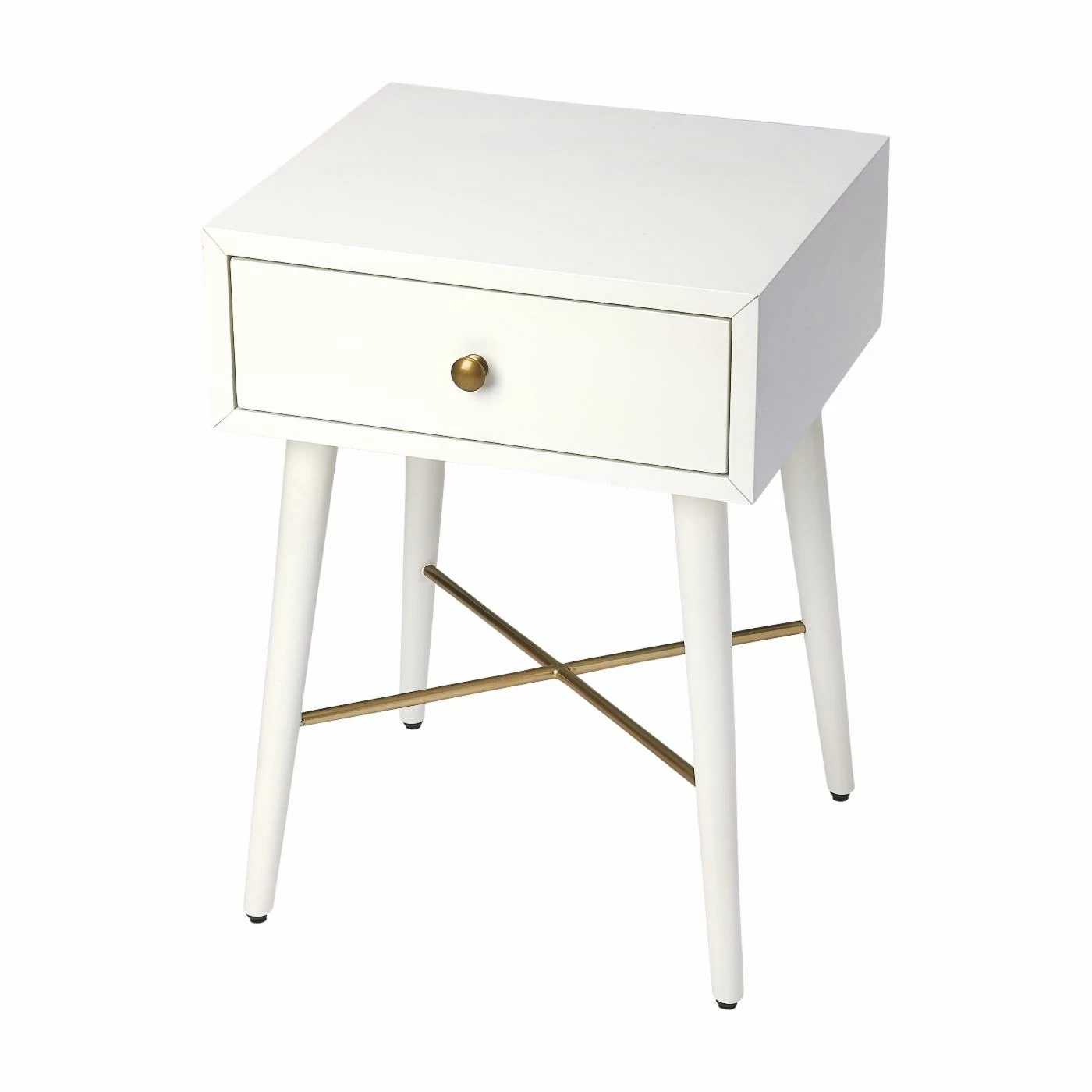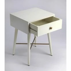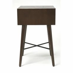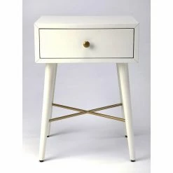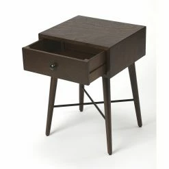With its classic shape and clean lines, the Butler Specialty Delridge End Table adds mid-century modern charm to your home. The drawer box stands on four round legs and a metal X-stretcher. It’s crafted from select hardwoods and veneers in your choice of available finishes.
