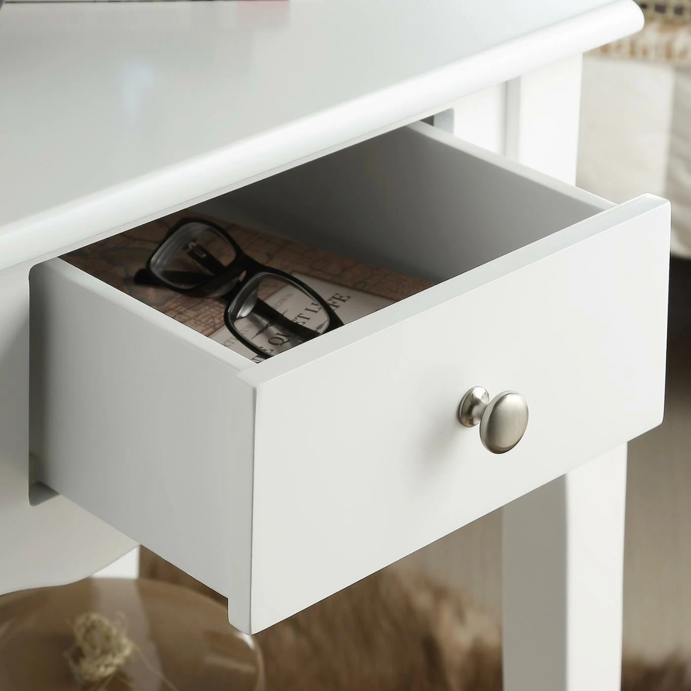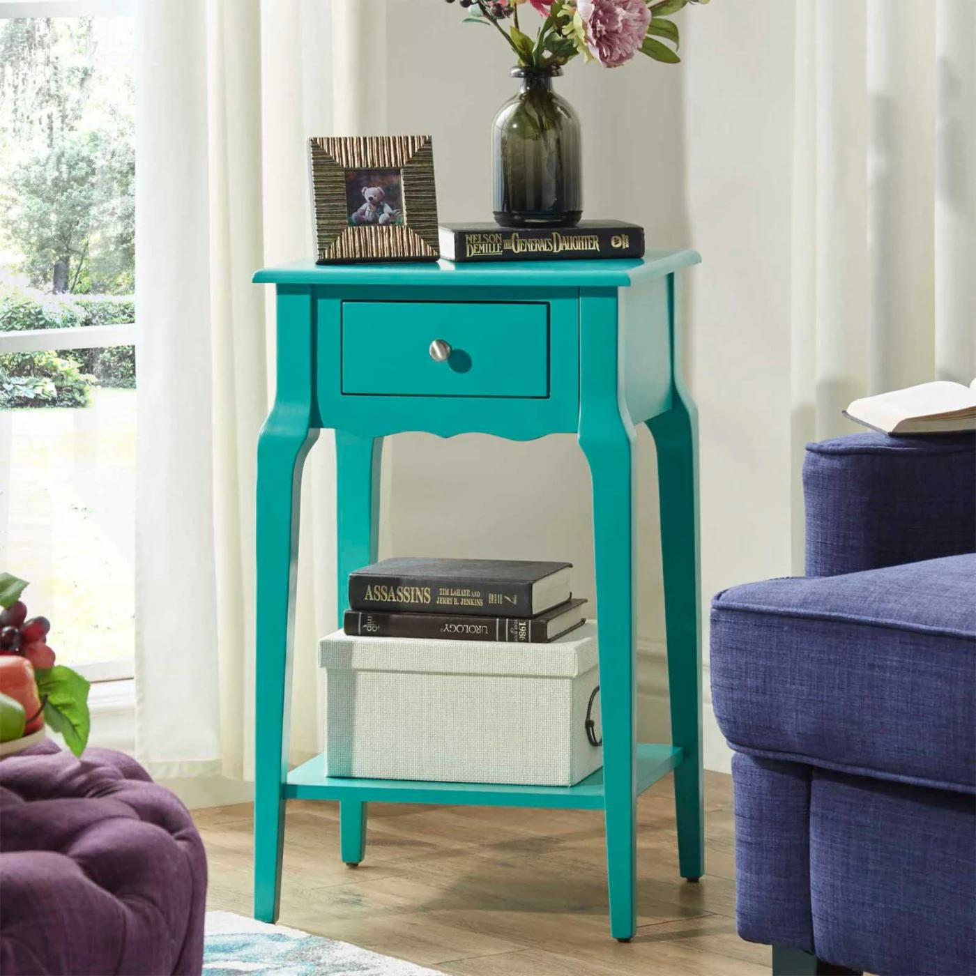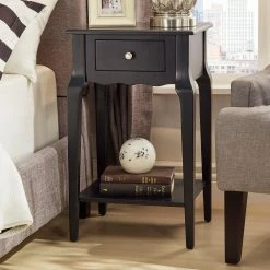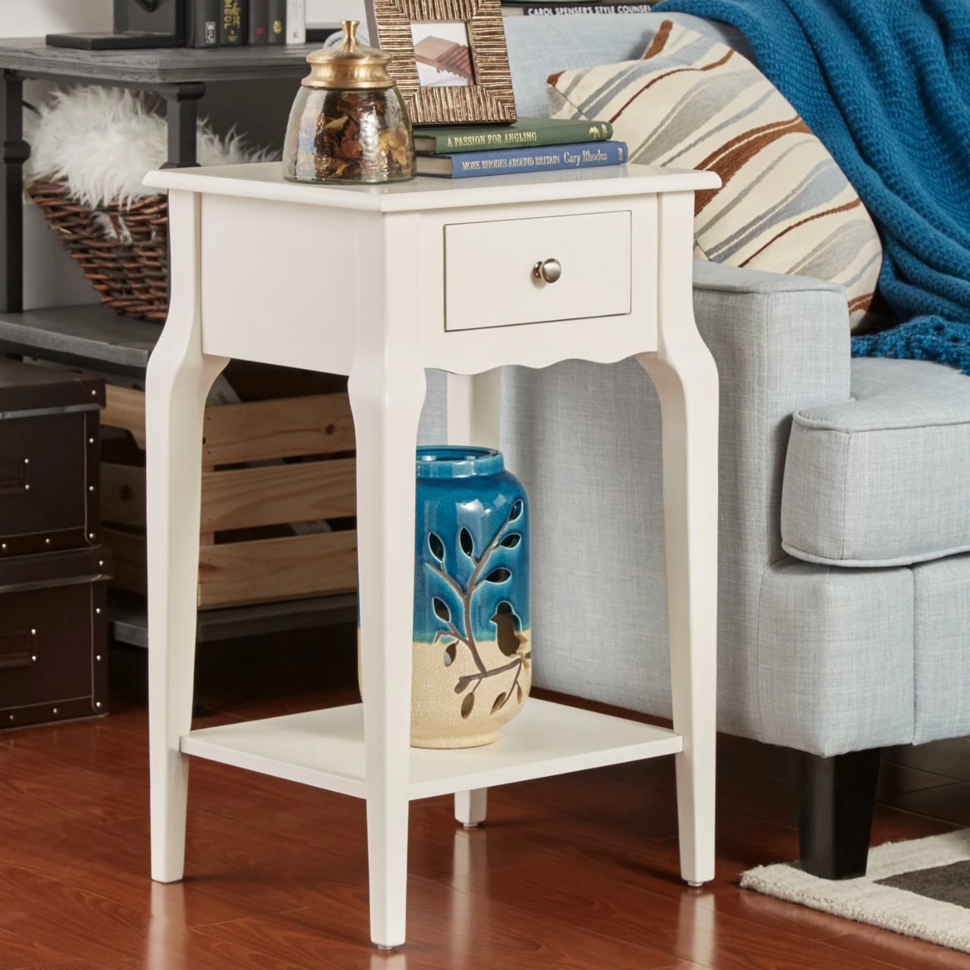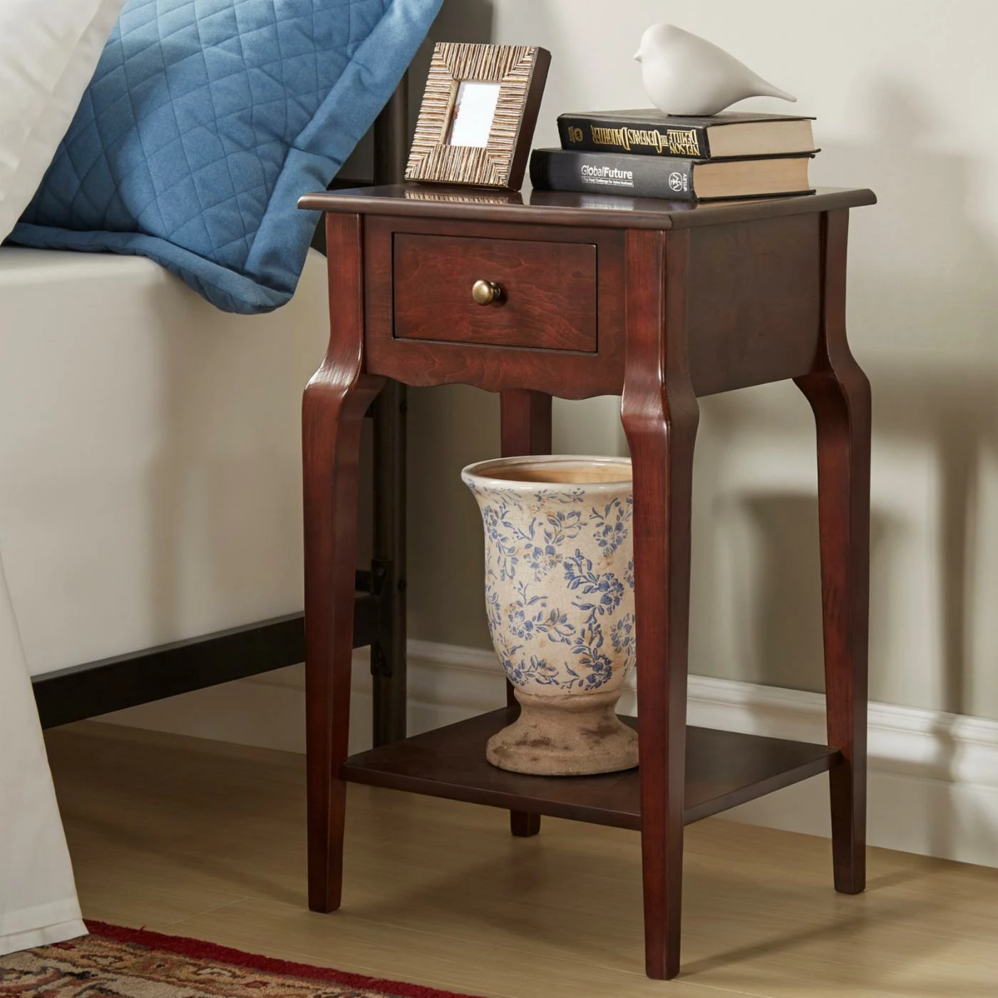 Domesticate the Chelsea Lane End Table with Shelf and keep it in practically any room. With broad shoulders, a scalloped apron, and a sweet low shelf, this end table offers personality plus. A variety of finishes are available, and the single drawer is handy for concealing small essentials. Try this piece as a nightstand, or use it in the guest bath as a holder for freshly folded towels and spare toothbrushes.