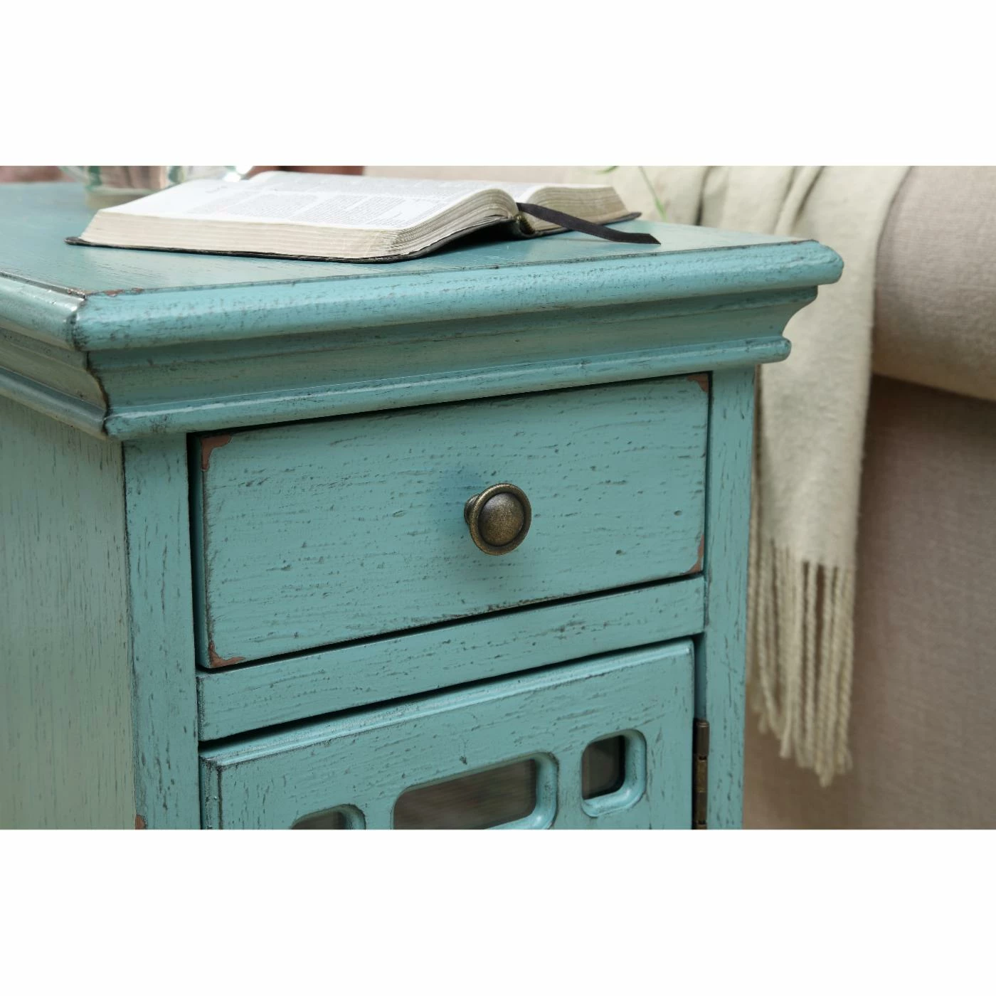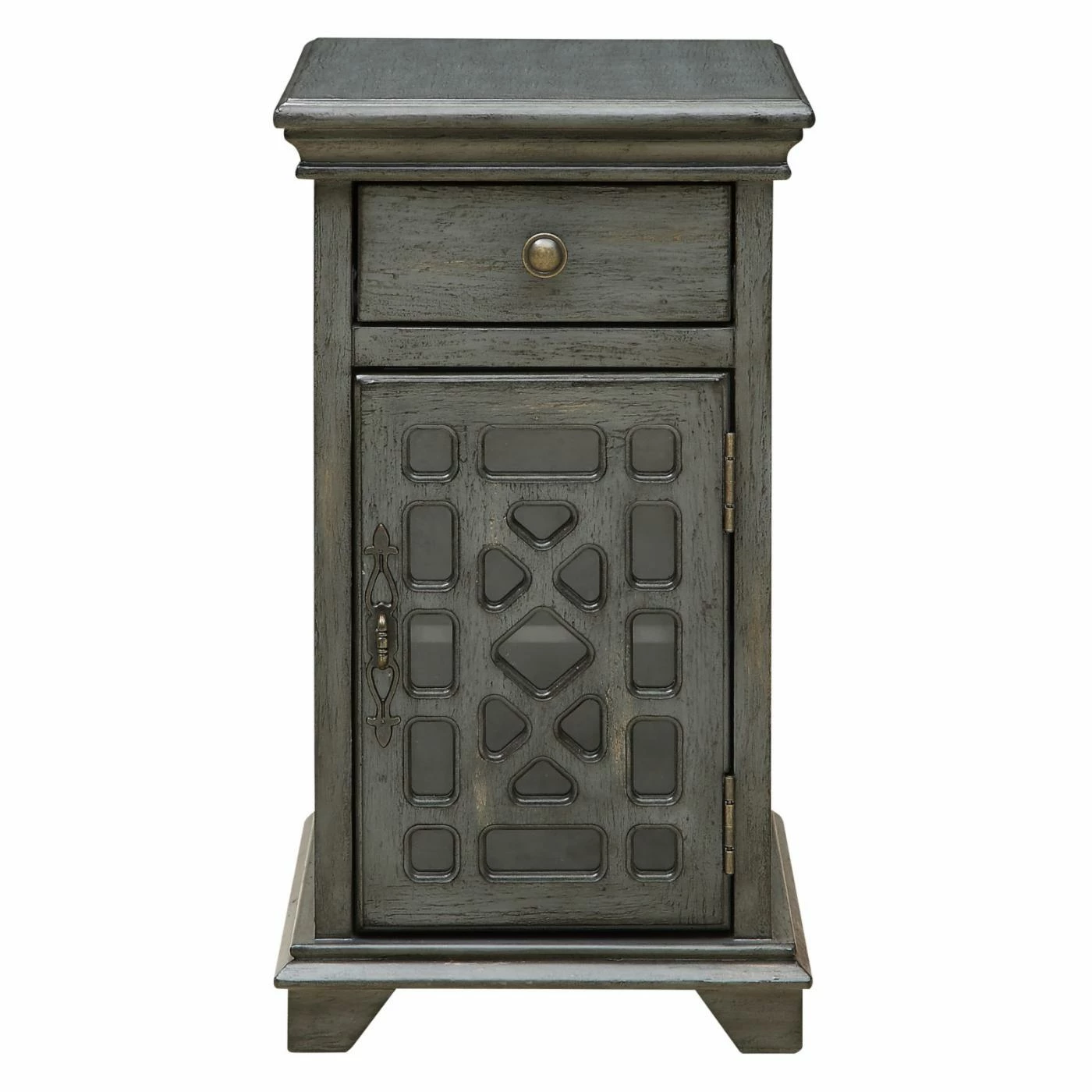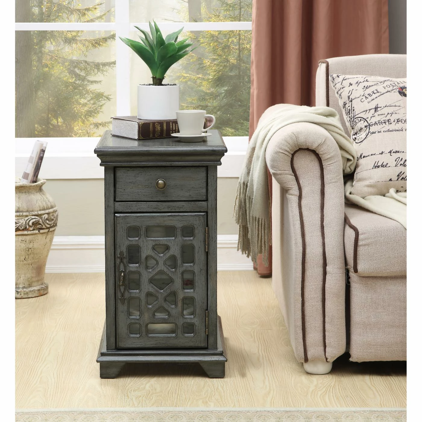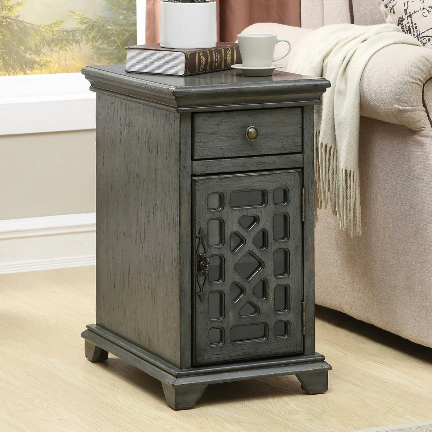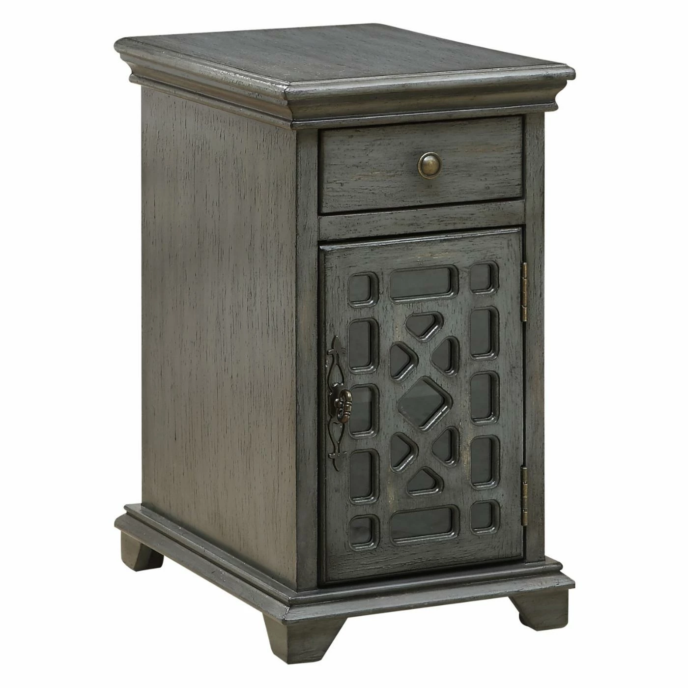 The Coast to Coast Imports One Drawer One Door Chairside Cabinet is a compact cabinet that fits well next to a sofa or chair in your home. It comes in your choice of finish, allowing you to choose a hue that complements your home. The door and drawer provide convenient storage, with an adjustable shelf allowing you to keep your items well organized.