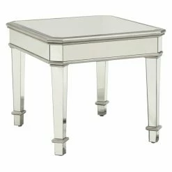 Built with a beautifully reflective silhouette, Coaster Furniture Mirrored End Table brightens your dΓ©cor with a glamorous appeal. Covered in mirrored panels from top to bottom, this square end table instantly updates your room with a sparkle and shine from any direction. Perfectly finished with silver accents, this table makes a stunning statement in any room of your home.