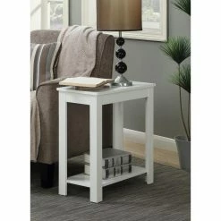 The Convenience Concepts Chairside End Table is designed to complement virtually any style thanks to is classic, timeless shape. This slender end table comes in your preferred finish and features a bottom shelf for additional open storage and display. Place it next to a lounge chair, loveseat, or sofa to create a convenient space to display a table lamp, books, remote controls, and much more.