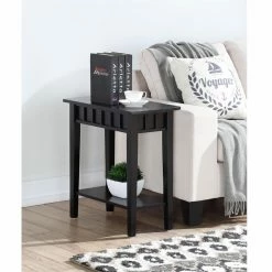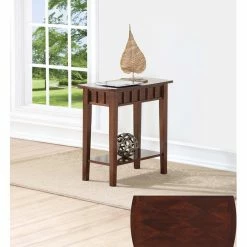 Traditional pane detailing adds a cottage feel to the Convenience Concepts Dennis End Table. Tapered solid rubberwood legs lend a spacious feel and offer stability. For two levels of display, this end table features a lower shelf. Choose from available finish options.