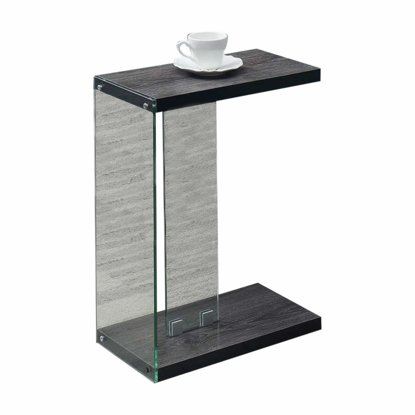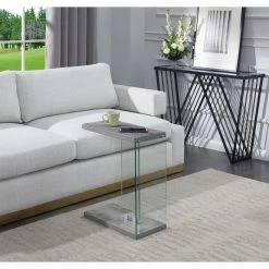 Dazzle your guests with the Convenience Concepts SoHo C End Table. Simple in design yet its versatility is endless. Set up in your living room, home study or den, and watch its functionality unfold as you slide it under the sofa to accommodate a cup of coffee or laptop at a closer distance. The tempered clear glass panels create the illusion that the top shelf is floating, adding to its modern contemporary style. The bottom and top shelves are crafted from honeycomb particle board that is finished in a rich melamine paper, making this unit durable and easy maintenance. Enjoy right after delivery with its 4 step assembly. Available in multiple finishes to complement your current home decor. Complete the look with additional pieces from the SoHo Collection by Convenience Concepts. Each sold separately.