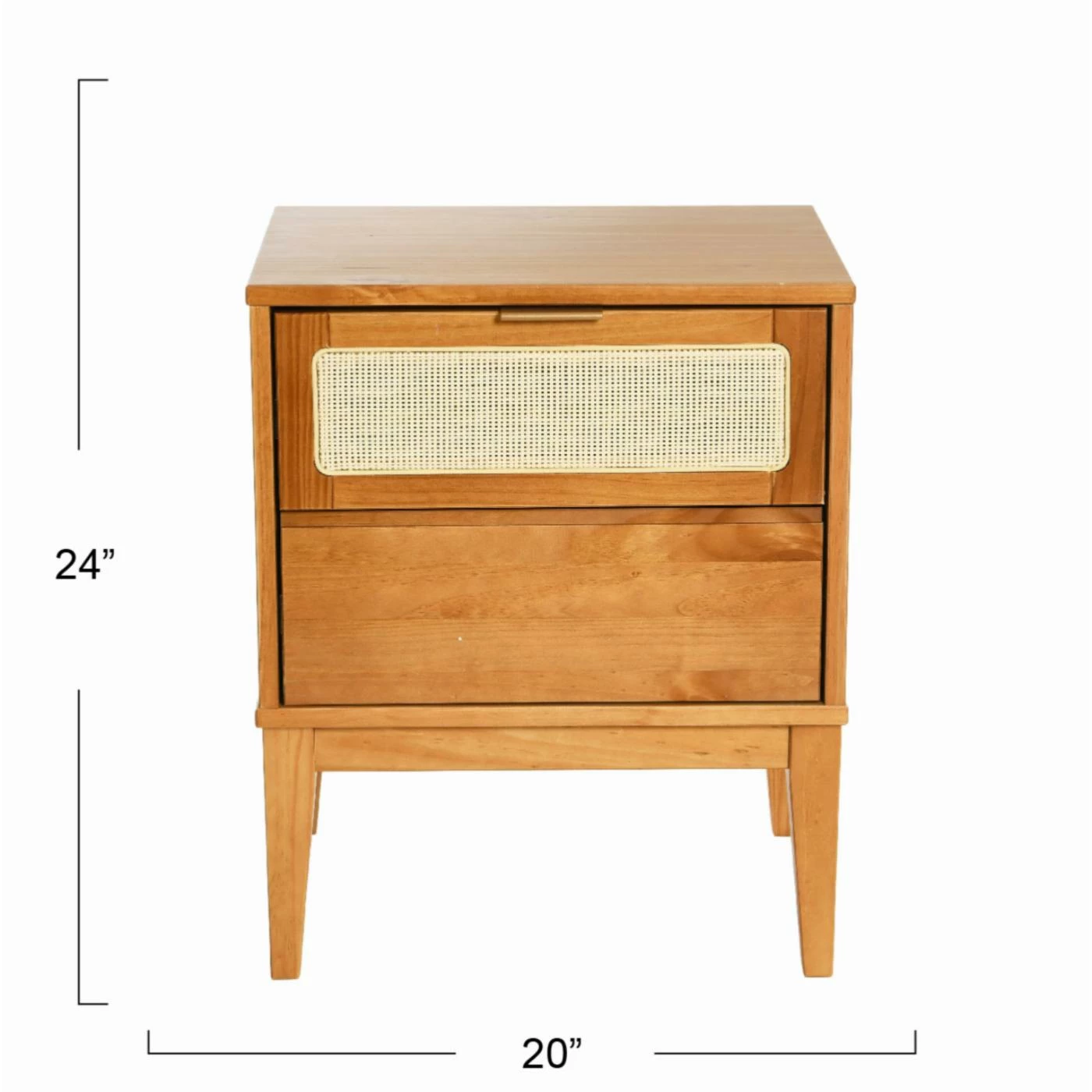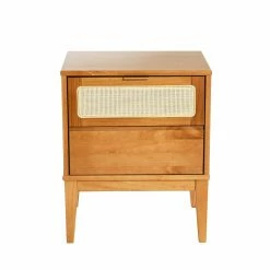 Reminiscent of mid-century design with modern and global influences, the Crawford bed side table features stunning pine wood construction and a single drawer outfitted with a stretched cane panel, intricately woven using the Brazilian palha technique. Its timeless design and subtly vintage details result in an elegant piece that will effortlessly serve as the perfect accent for any bedroom.