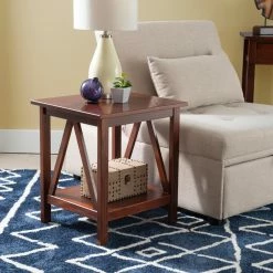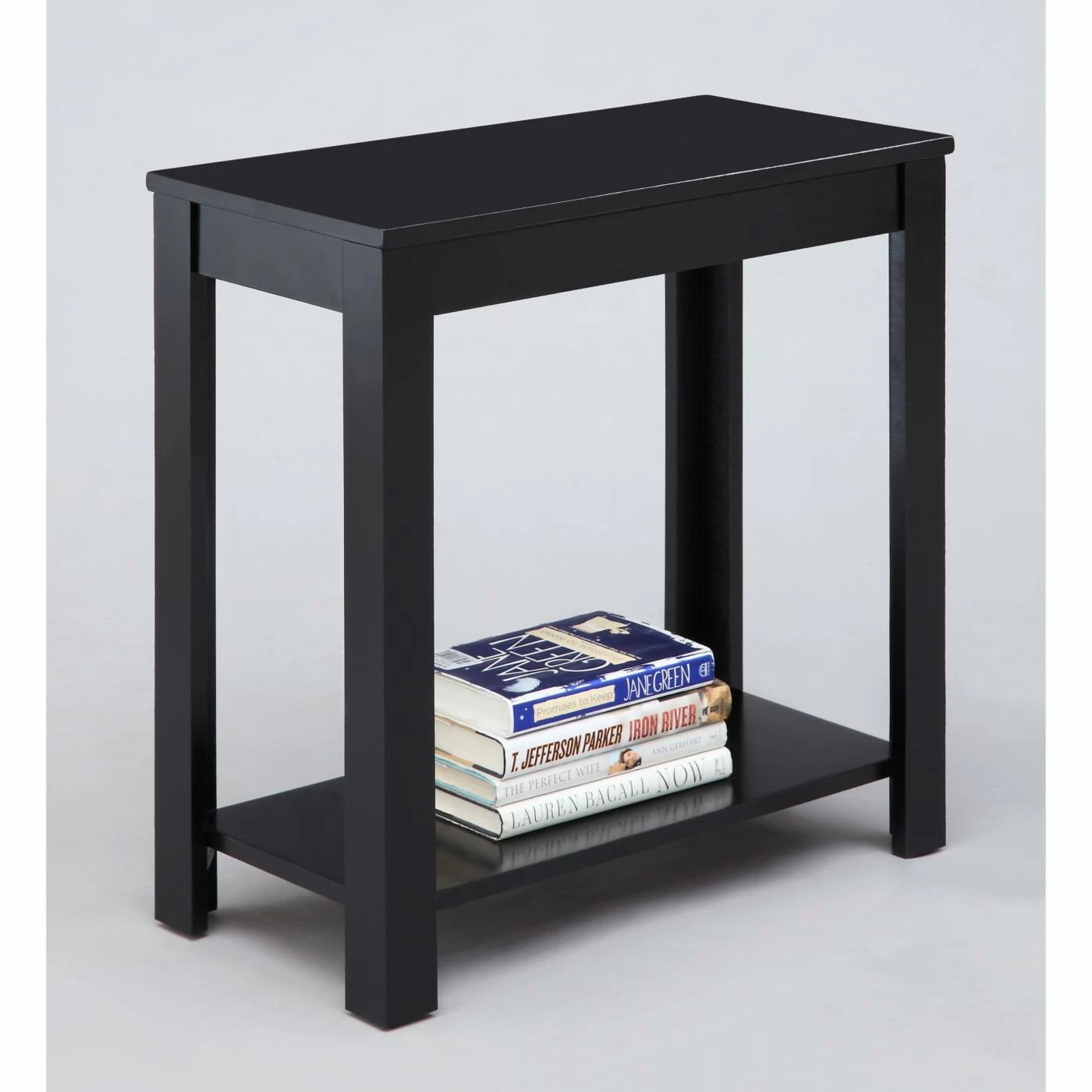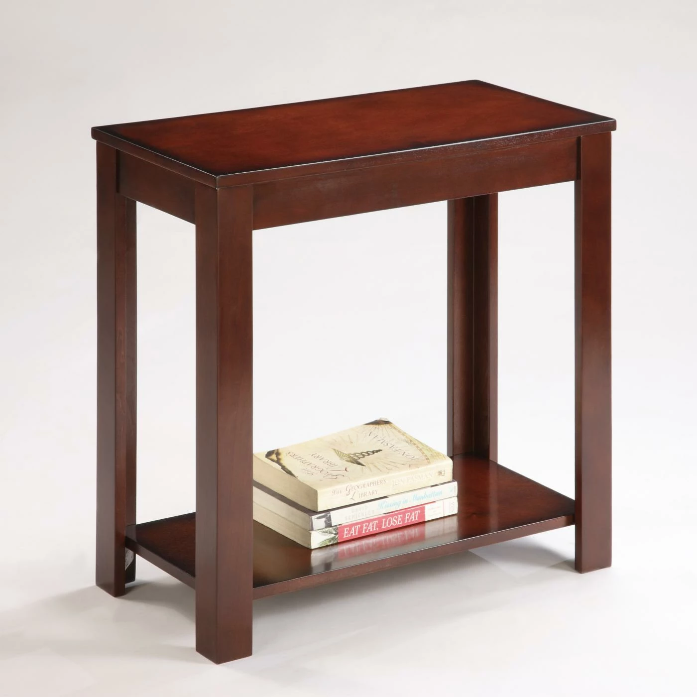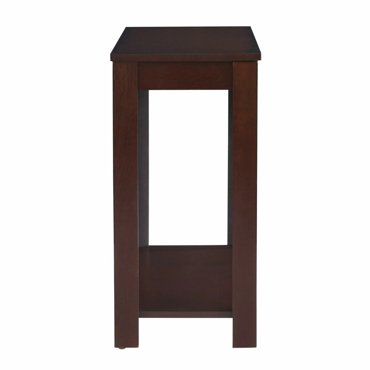 Straight square lines provide a strong design on the Crown Mark Pierce Rectangular Chair Side Table. The pine wood construction is durable enough to hold all of your books, lamps, and decorative pieces. The shelf on the bottom adds extra space for your decorating and organizing plans. Choose from the available finish options to find the best fit for your style.
