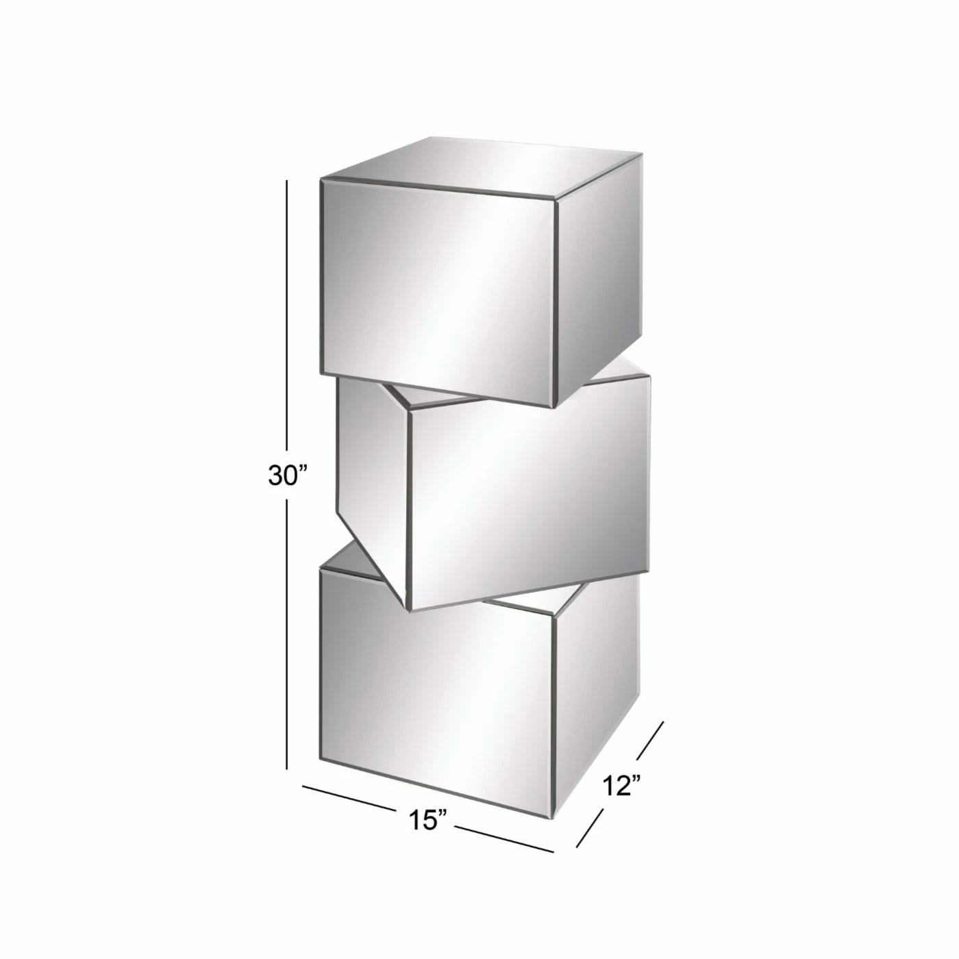 The DecMode Stacked Cube End Table combines simple shapes and modern materials to make a perfect complement to any contemporary design scheme. The end table is comprised of three cubes stacked atop one another and slightly rotated for a jaunty look. The frame of this piece is constructed from medium-density fiberboard and features mirrored panels as the sides of each cube, providing bright, reflected illumination that helps brighten up that bare corner.