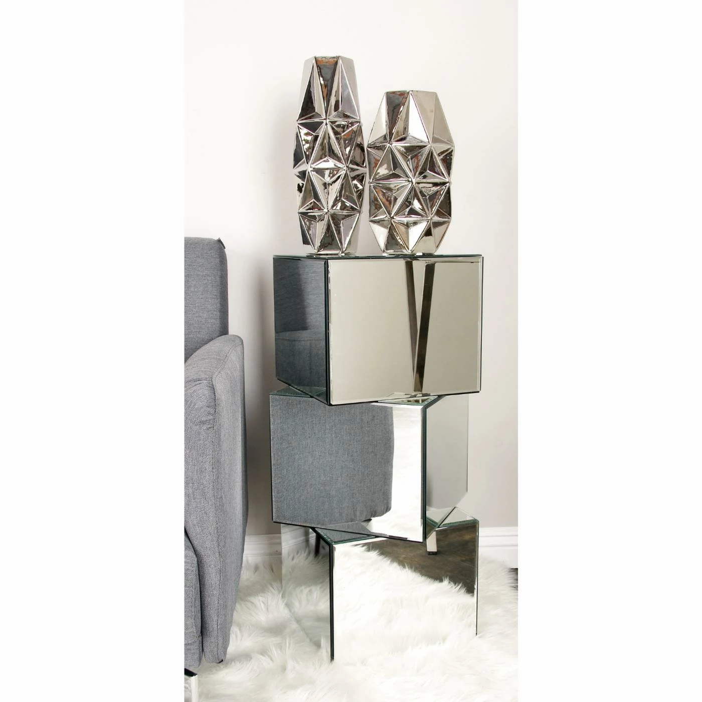 - Cubes feature mirrored panels