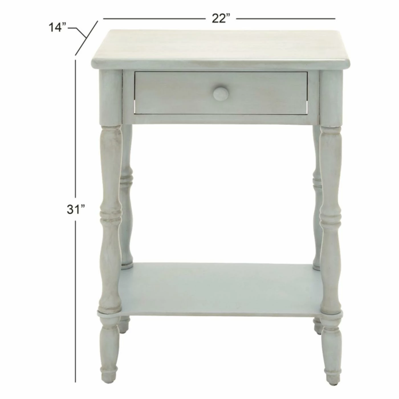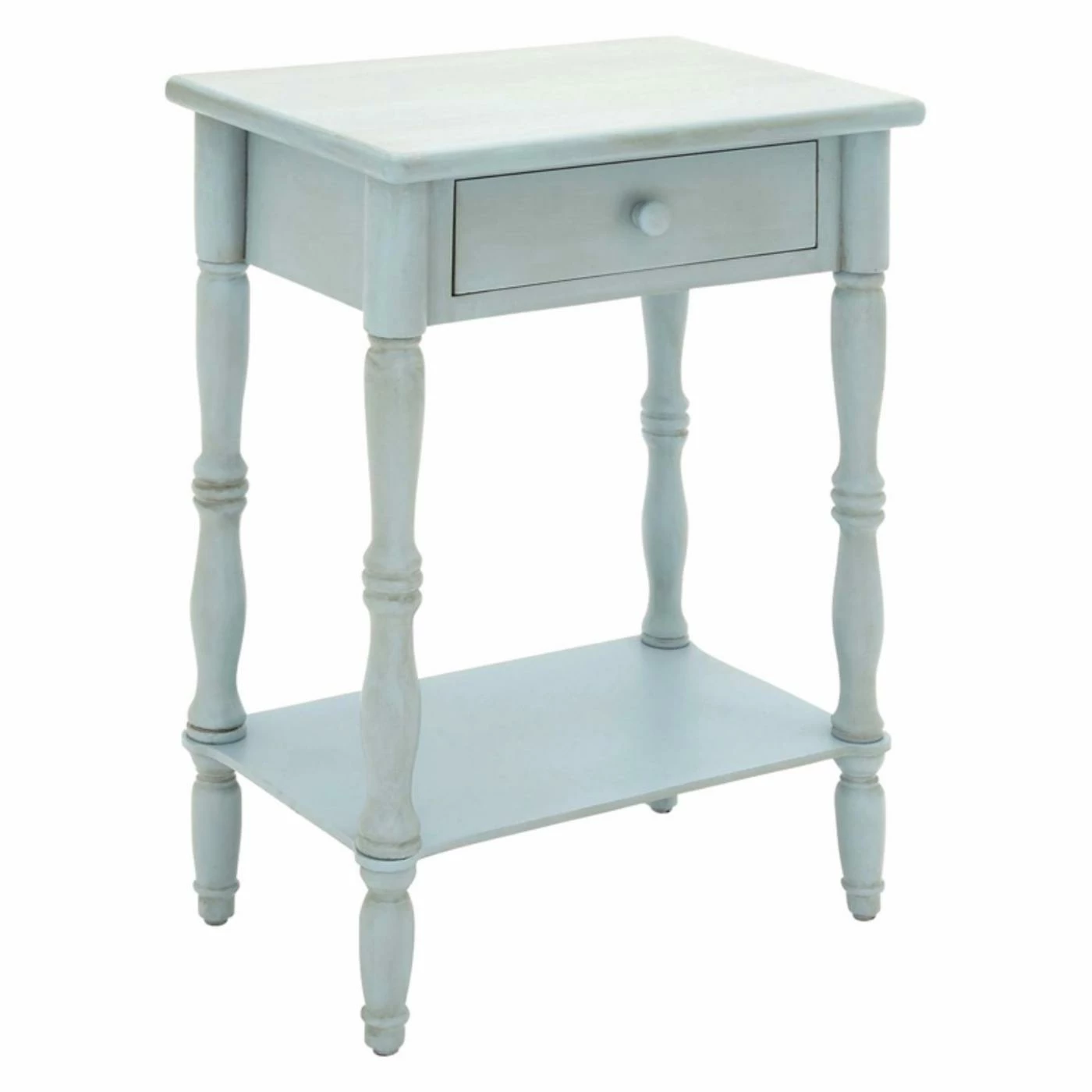 A cottage cutie with a purpose, the DecMode Traditional Wooden End Table features elegantly turned legs, a matte blue finish, and both storage and display space. This end table is made of cedar and is scaled to fit nearly anywhere.