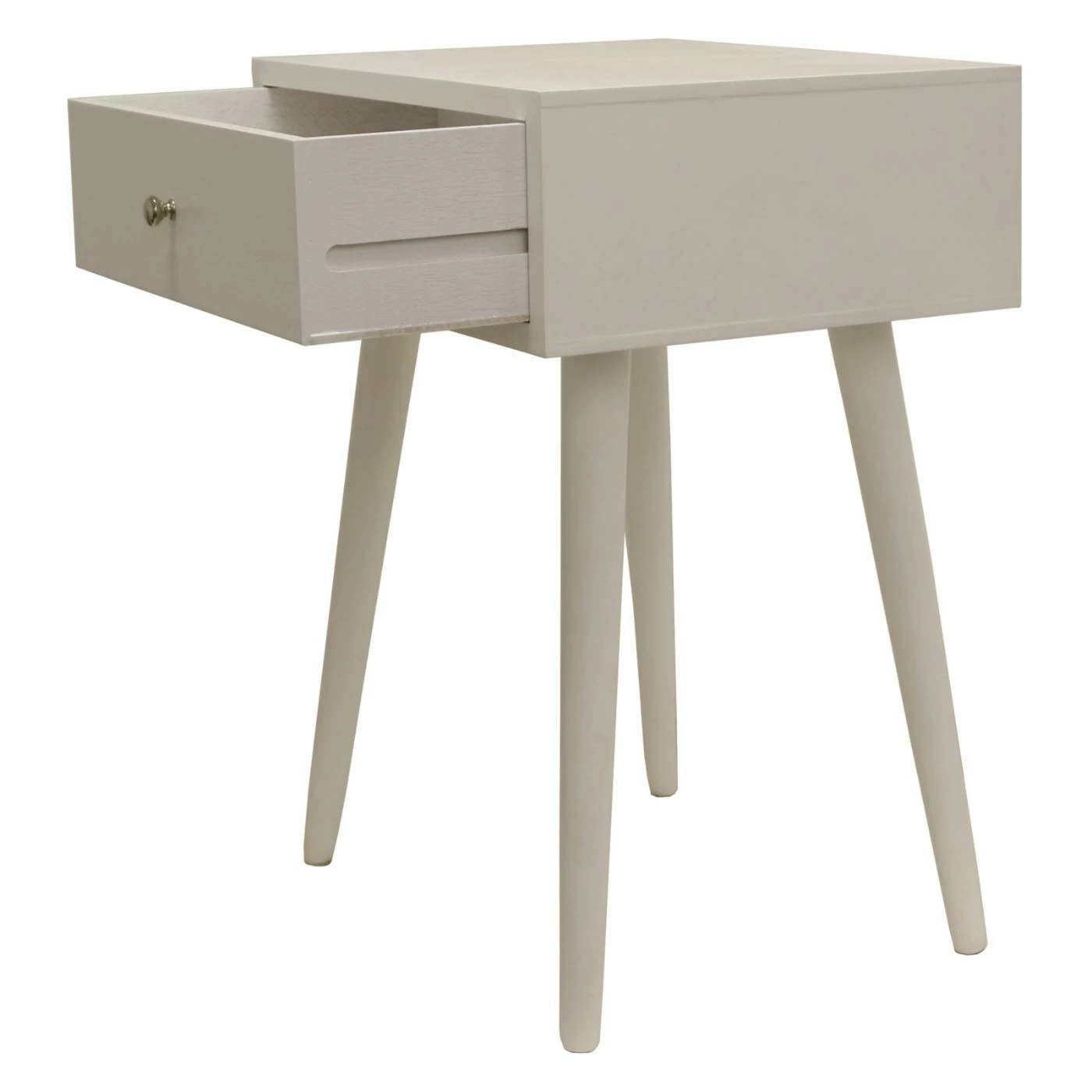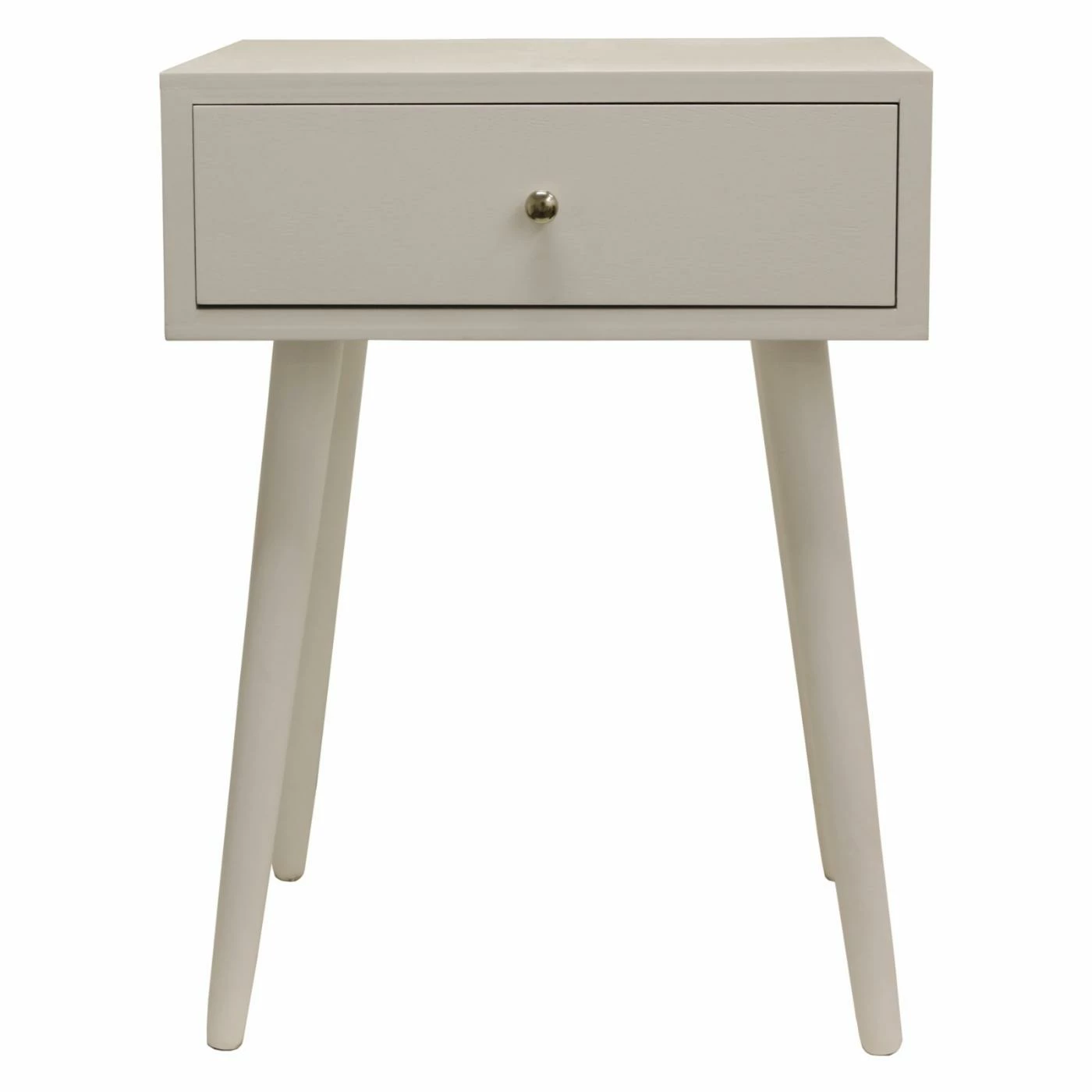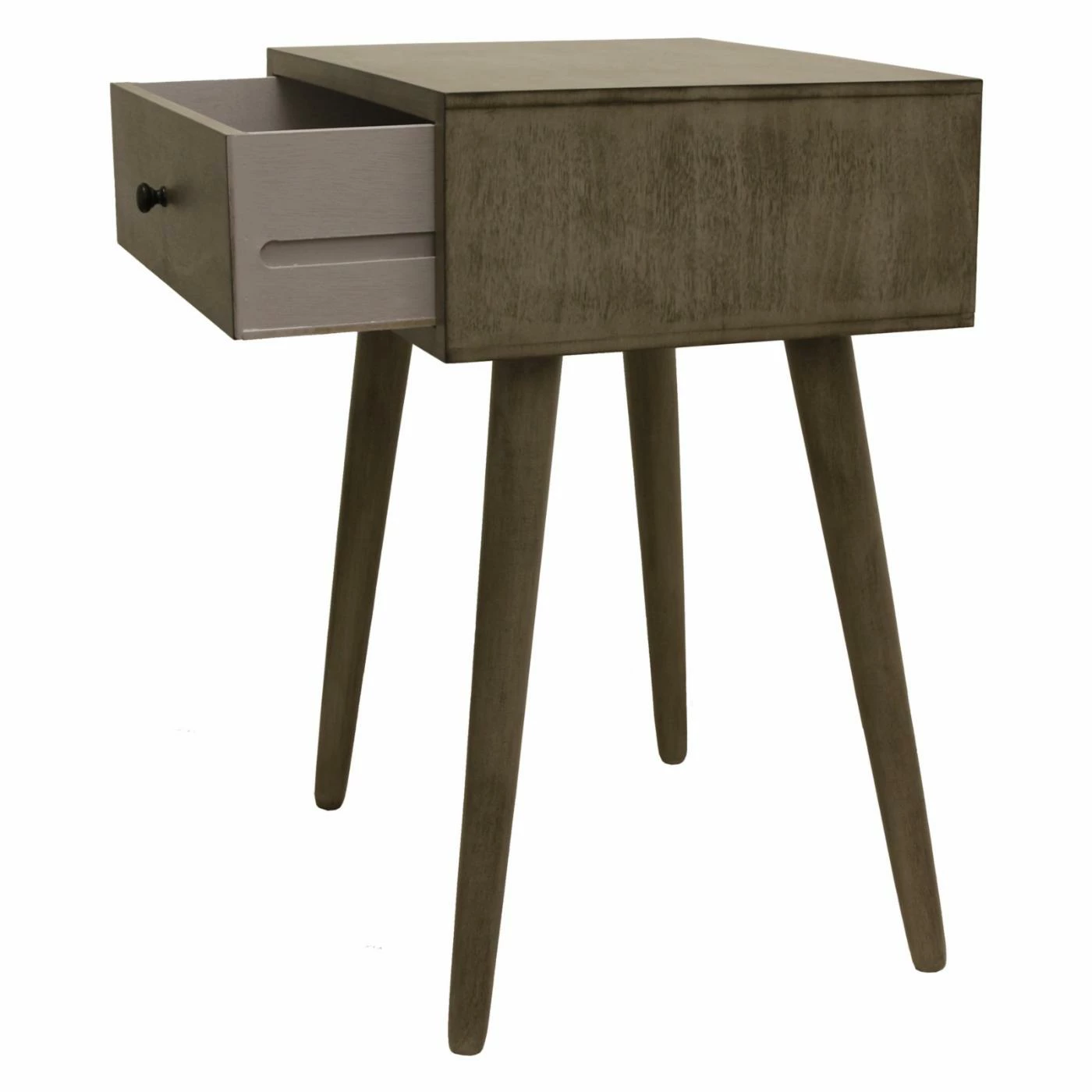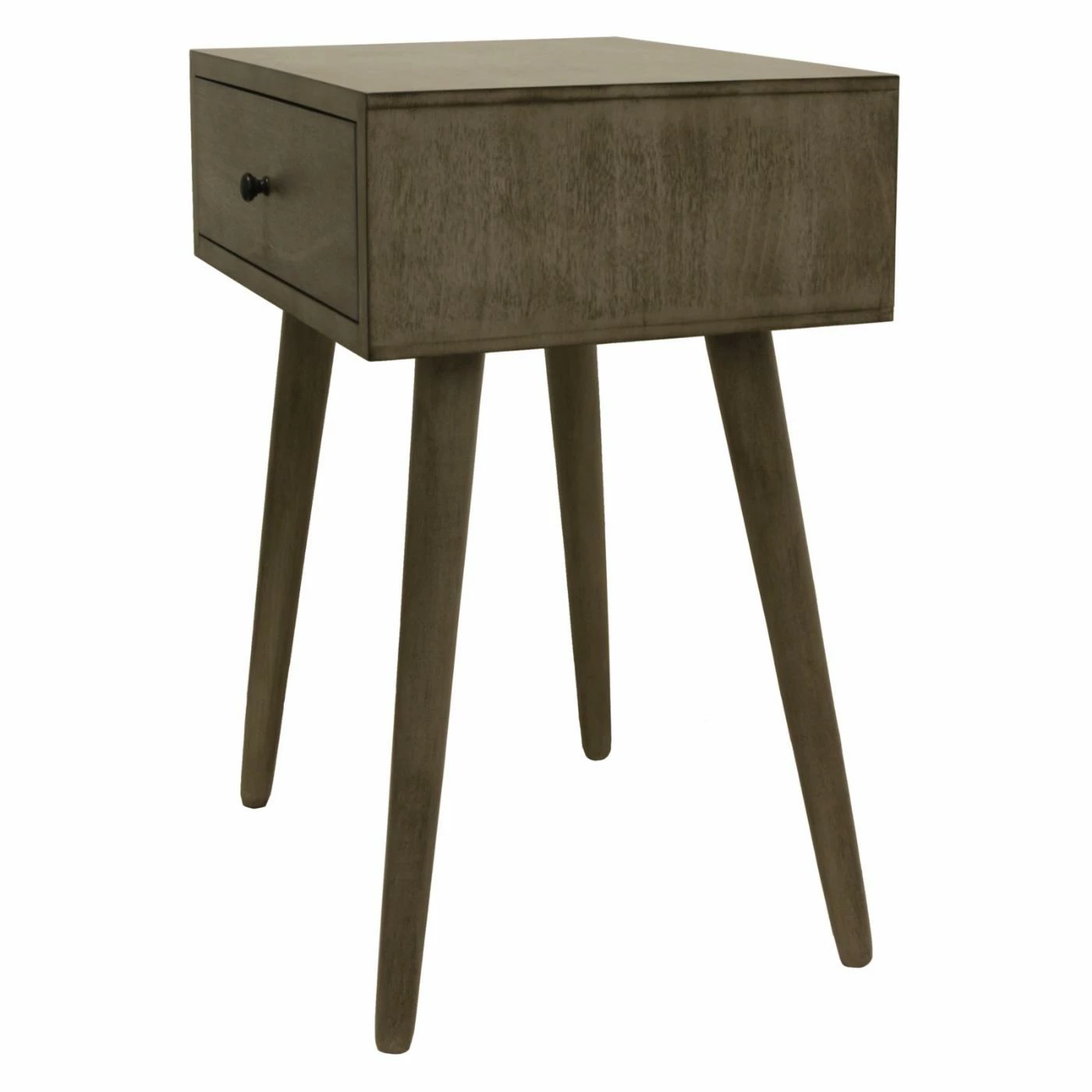 Bring retro style to your home with the fetching Decor Therapy Mid-Century One Drawer Side Table. This understated side table is crafted of solid and engineered wood for lasting use. The single drawer offers convenient storage space for household items. Choose from the available finish options to best complement your existing furnishings.