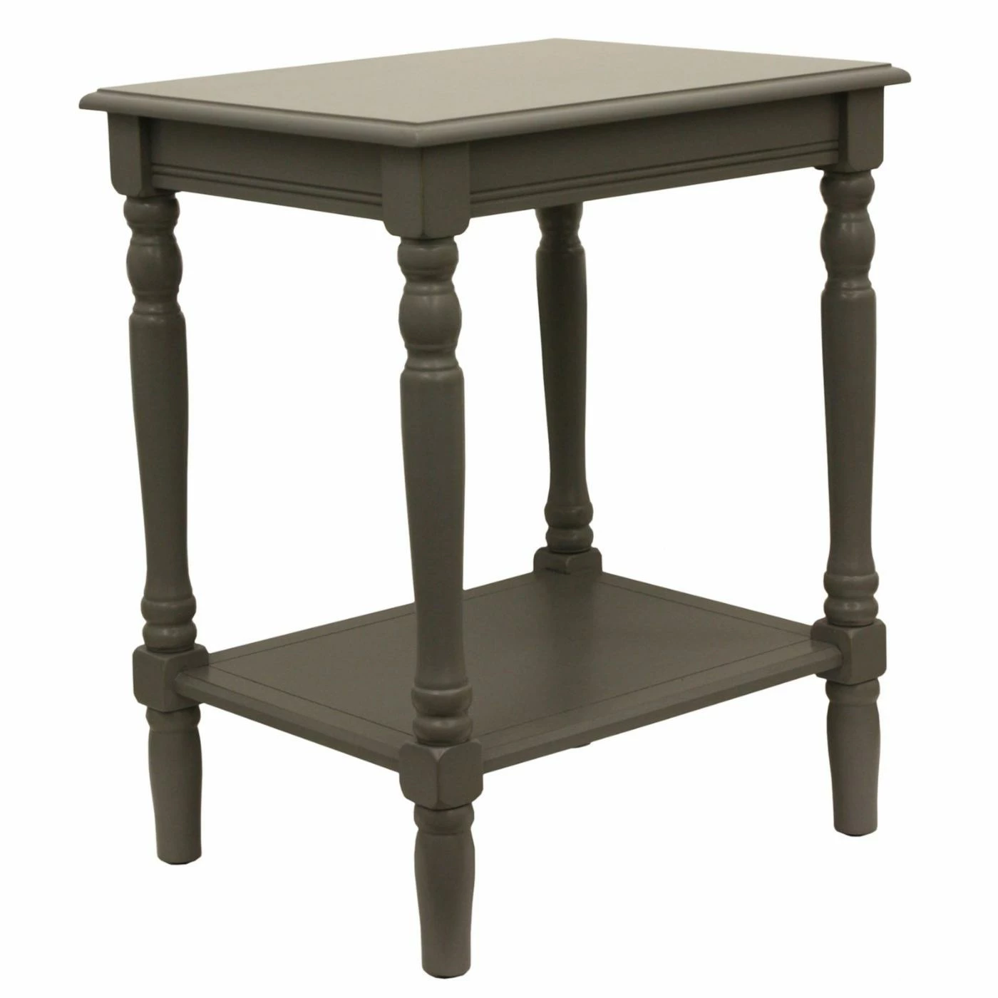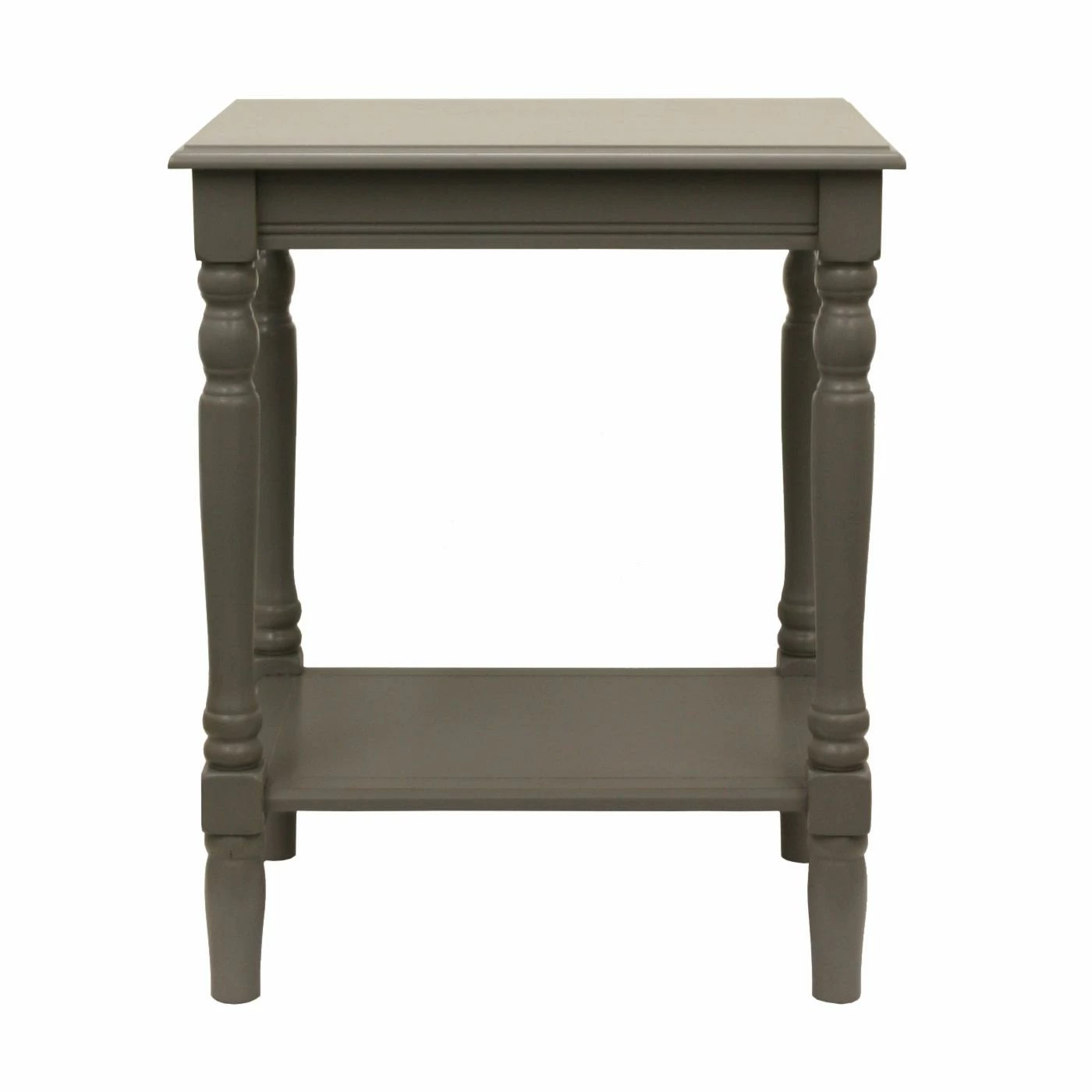 Classically curved legs give this Decor Therapy Simplify Eased Edge End Table its French country charm. A square top and base shelf provide two levels for display. This end table is built of oak and veneers in a painted gray finish that enhances the country design aesthetic.