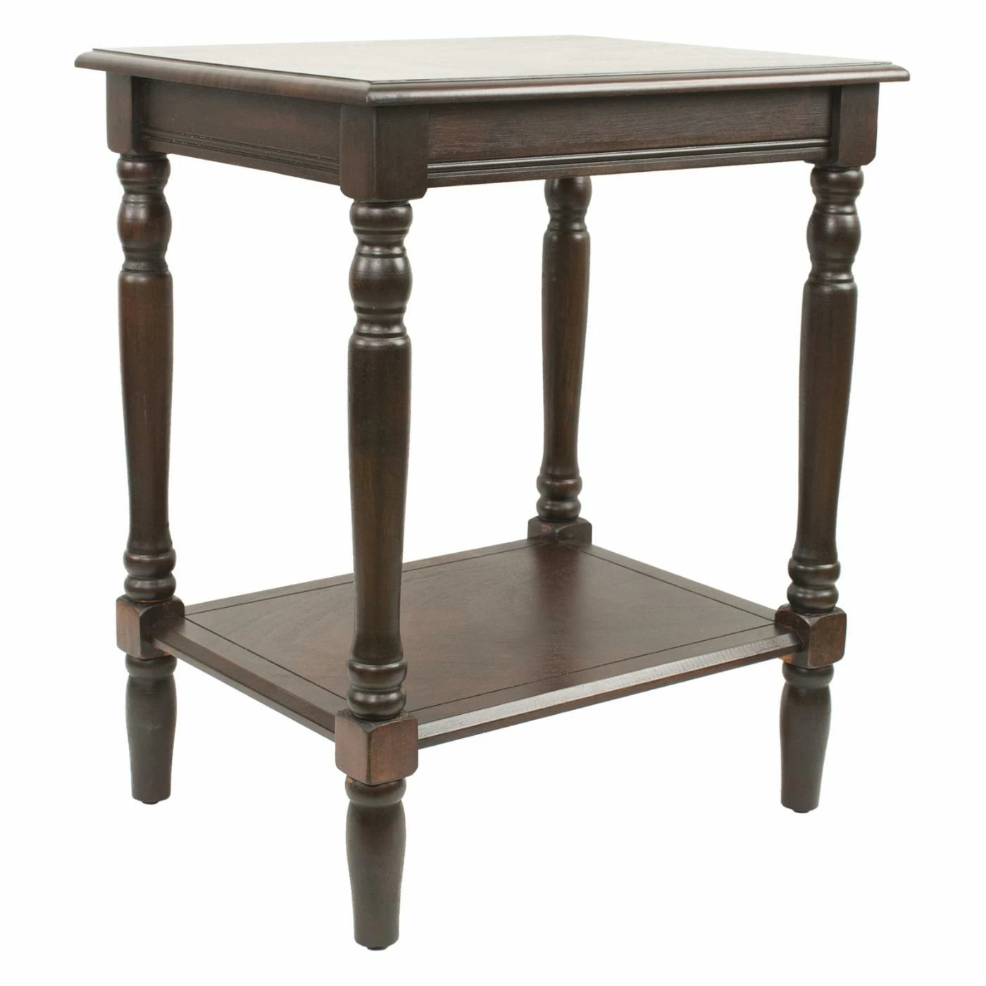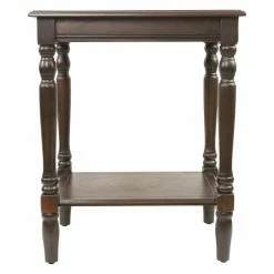 The square top and base shelf of this Decor Therapy Simplify Rectangle End Table are grooved for detail and offer two levels for display. This end table is made of oak. Customize the look by choosing from available finishes.