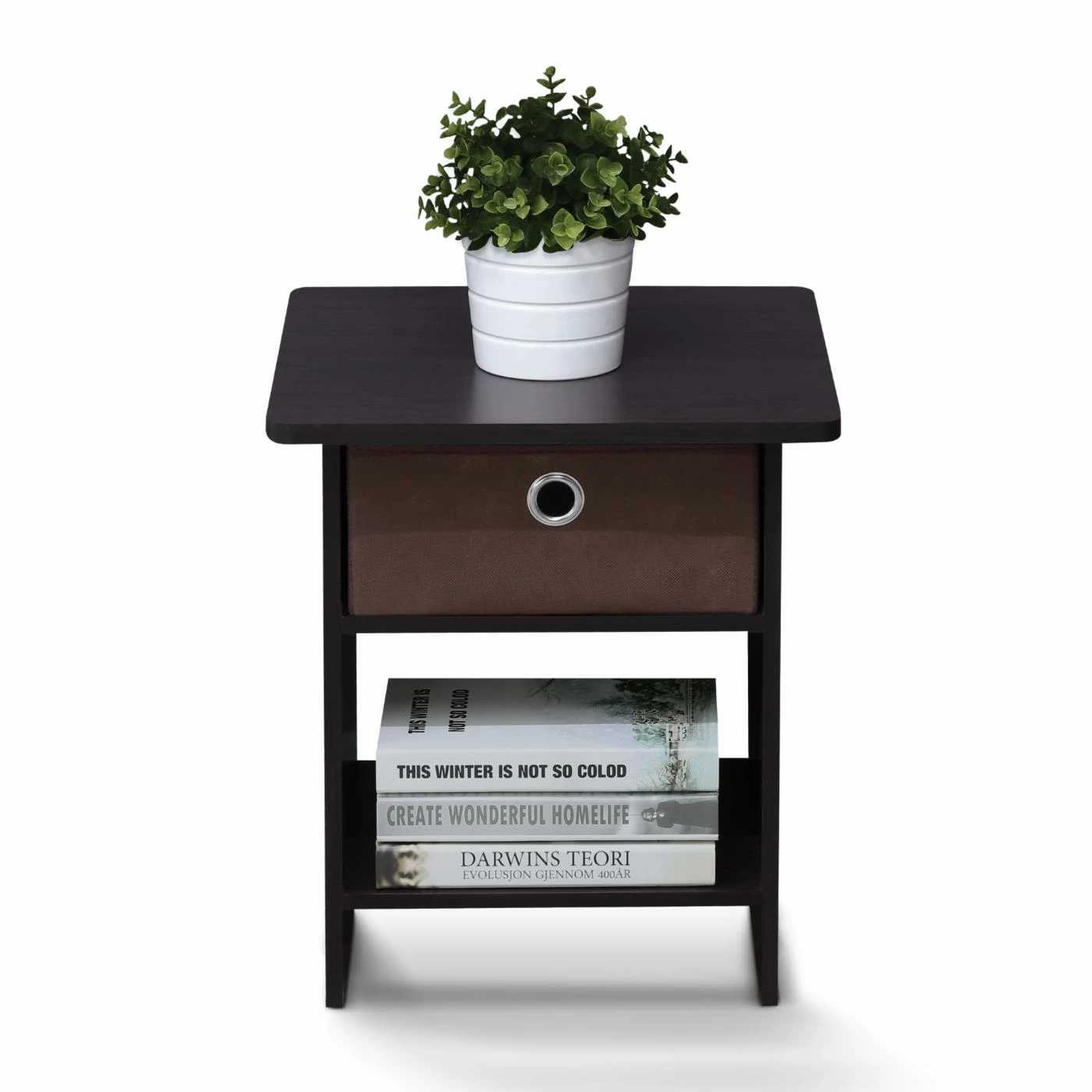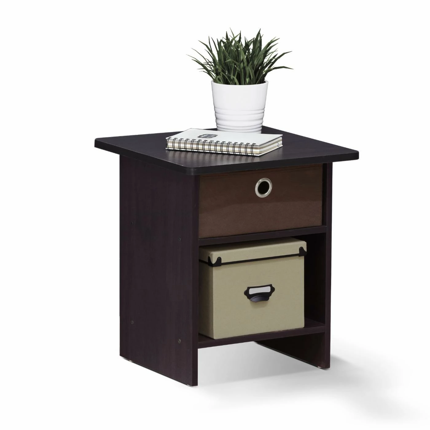 Simple, stylish, and designed to last, the Furinno Dark Walnut Chair Side End Table will bring contemporary flair to your home. This end table features a square top that’s perfect for setting your coffee cup or latest read. Constructed from composite wood, this side table also includes a fixed lower shelf and single drawer. Its dark walnut finish will add a posh touch to your décor.