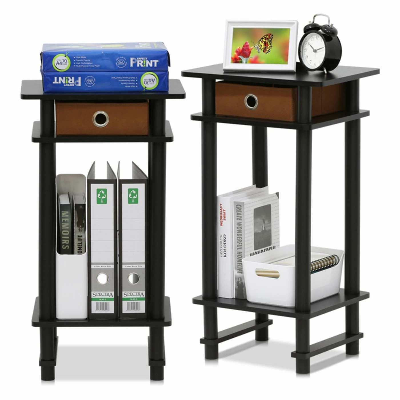 Refresh your home’s interior style with the Furinno Turn-N-Tube Tall End Tables – Set of 2. These end tables feature sturdy construction complemented by a rich espresso finish. Both tables feature a fixed lower shelf that’s perfect for stowing your favorite plants. Each has a single drawer that keeps household essentials safely stored until needed.