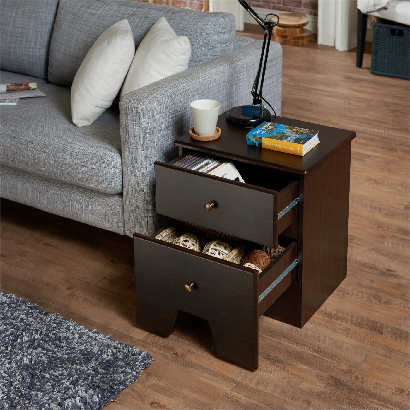 The Furniture of America Kandle End Table is a versatile addition in your home and pairs nicely next to a sofa or chair. Two drawers provide convenient storage space for those essentials. The angular cutout at the base of the drawer adds visual intrigue. Drawers are equipped with antique brass knobs and metal slides, making opening and closing them a cinch.