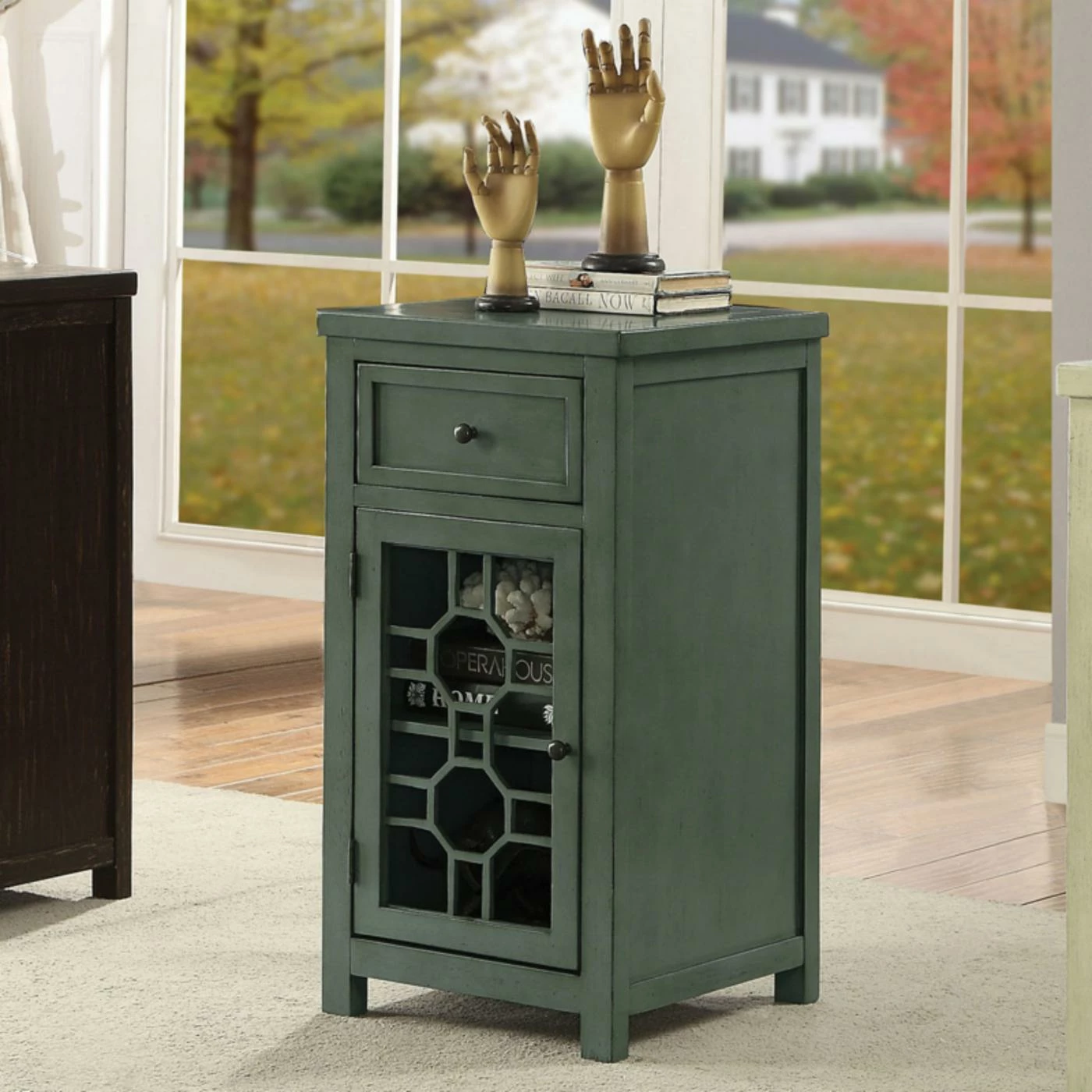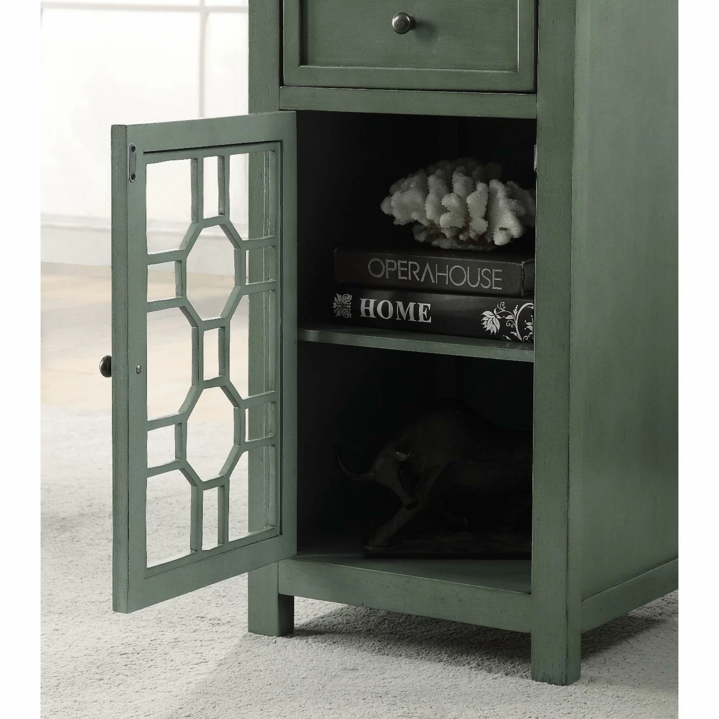 - Geometric design on cabinet door