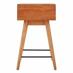 With its smart storage and mid-century flair, the HN Home Krisel Mid-Century Modern End Table makes a great bedside or chairside companion. This end table boast a spacious top and single box drawer on side-mount metal glides for smooth, dependable operation. It’s built of rubberwood and veneers in a natural brown finish and stands on long, lean, and flared wood dowel legs with black metal stretchers.