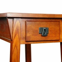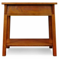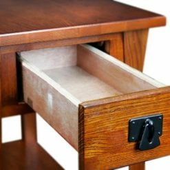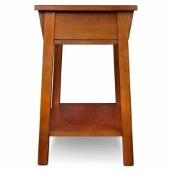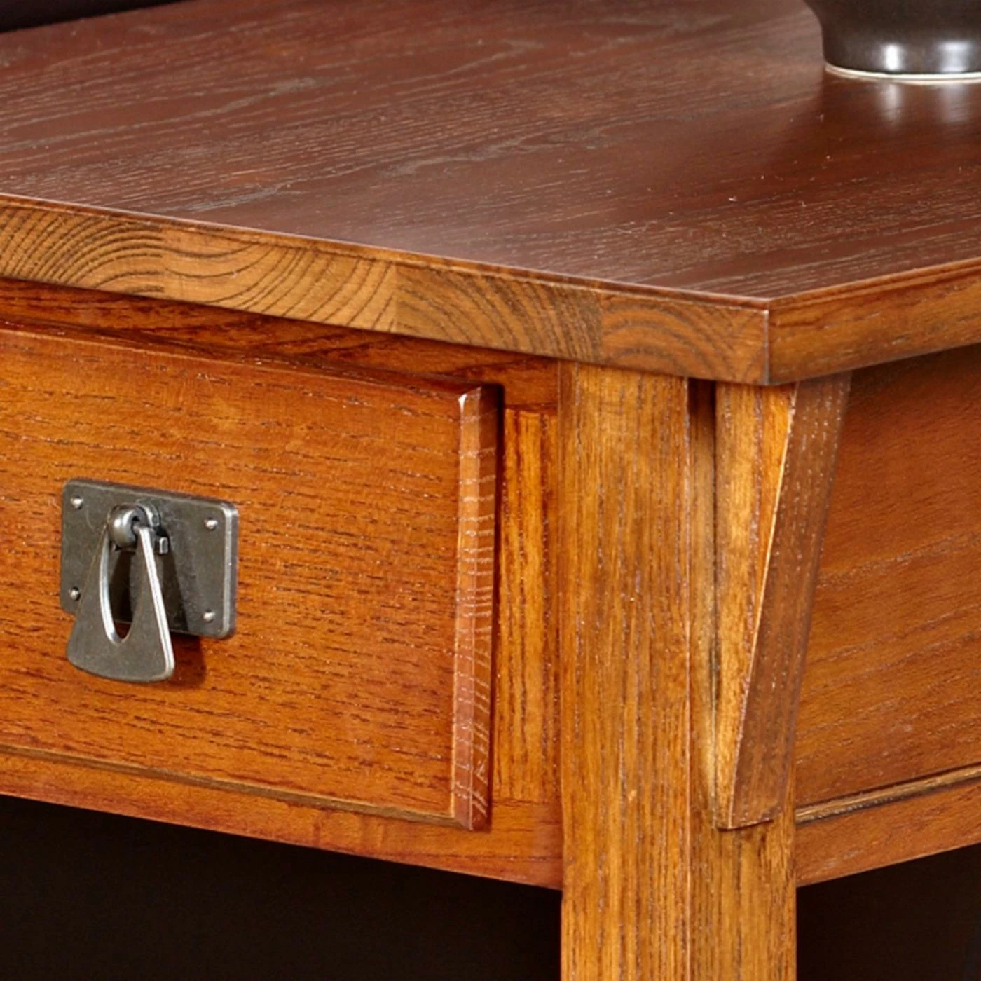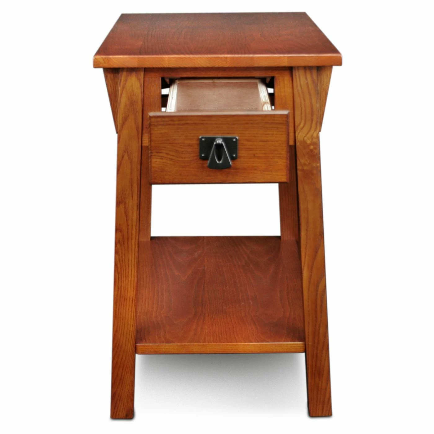 Add a touch of elegance to your home decor-style with the Leick Home 9059-RS Favorite Finds Mission Chairside Table. Featuring a solid ash and oak veneers construction, this Mission-styled table is sturdy enough to withstand the wear and tear of daily use. Apart from this, its narrow shape makes this unit a space-efficient solution for small spaces. The canted post and wedge corbel provide additional stability to this table. A rich russet finish and blackened metal hardware add to the visual appeal of this unit.