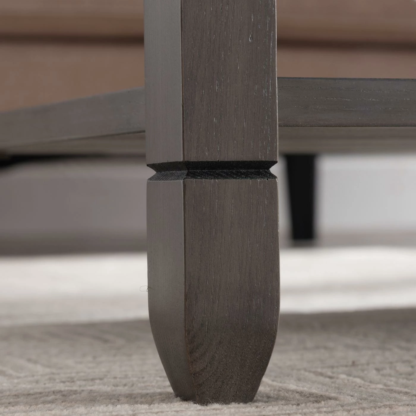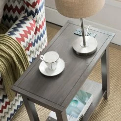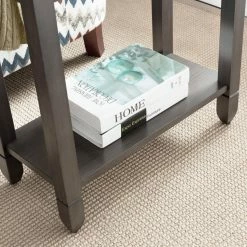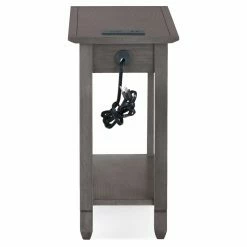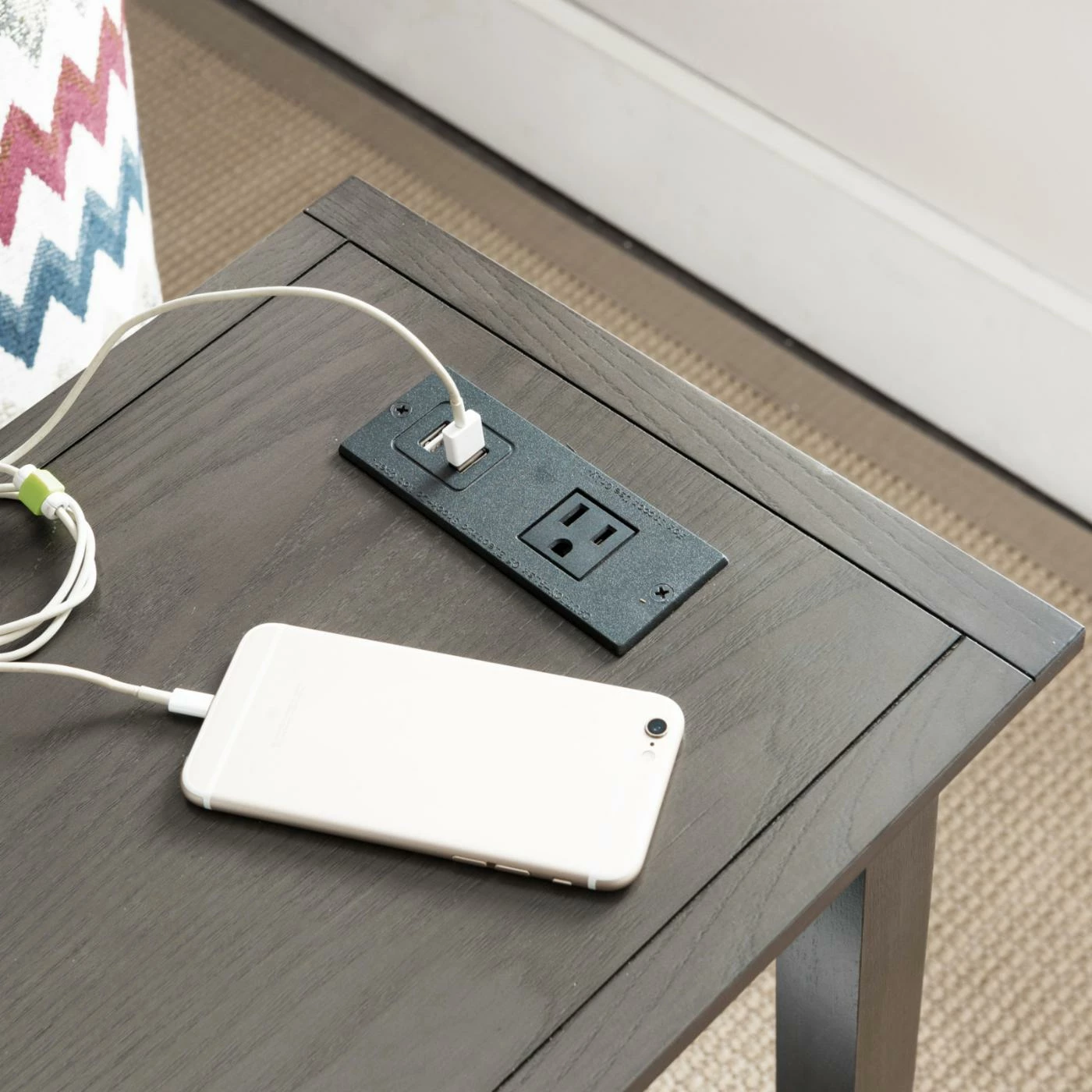 For the ultimate modern convenience, the Leick Home Chairside Table with Charging Station boasts a flush-mount electric outlet and two USB ports. This tech-savvy chairside table is scaled slim and wide, making it ideal beside your chair, behind the sofa, or in your mud room. It’s built of solid wood, graced by natural slate details, and finished in a versatile smoke gray.