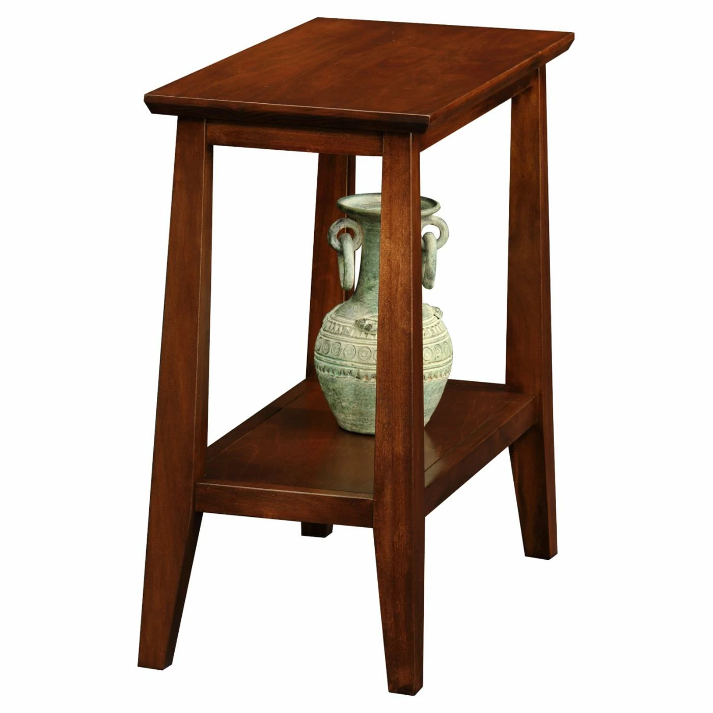 Small in scale yet big in style, the Leick Home Delton Narrow Chairside End Table is perfect for your smaller living space. This end table is made of solid hardwood with a rich, hand-applied Sienna finish, tapered legs, and handy shelf below for display.