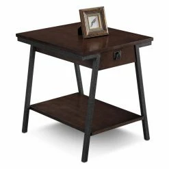 The Leick Home Empiria End Tableβs stable frame is crafted from durable stainless steel and finished in a boldly textured smelted bronze to bring an industrial accent to the design. A wooden tabletop and shelf with a sleek walnut finish offer a sophisticated element to enhance the look, with beveled edges to add an extra elegant touch to the display shelf. A wood drawer offers convenient storage, with ball bearings for a smooth, clean glide.