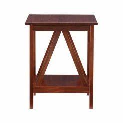 Simply stunning, the Linon Titian End Table is the perfect accent piece for your stylish living room. The chic, transitional style features geometric accents and is crafted of durable pine wood and engineered wood. The rich look of the finish is certain to coordinate with your other pieces, creating a streamlined look you’ll love for years to come. The smooth top and open shelf below are just right for storage and display. Assembly required.