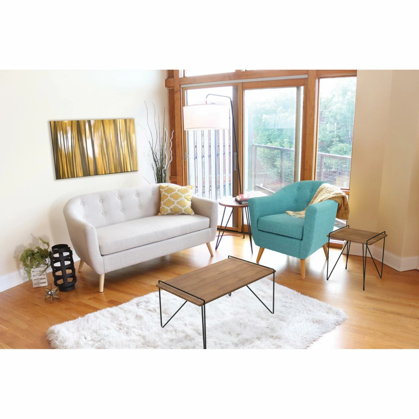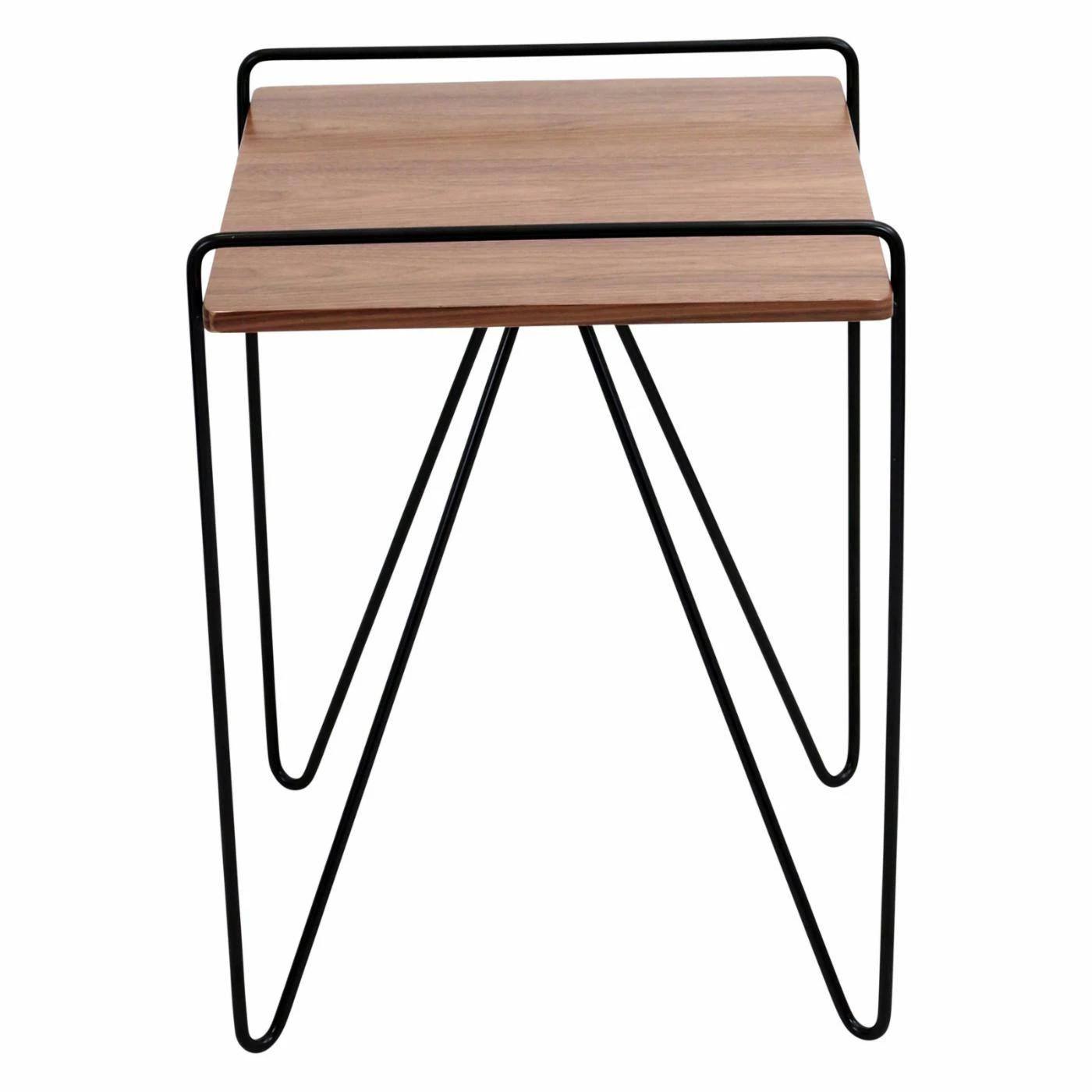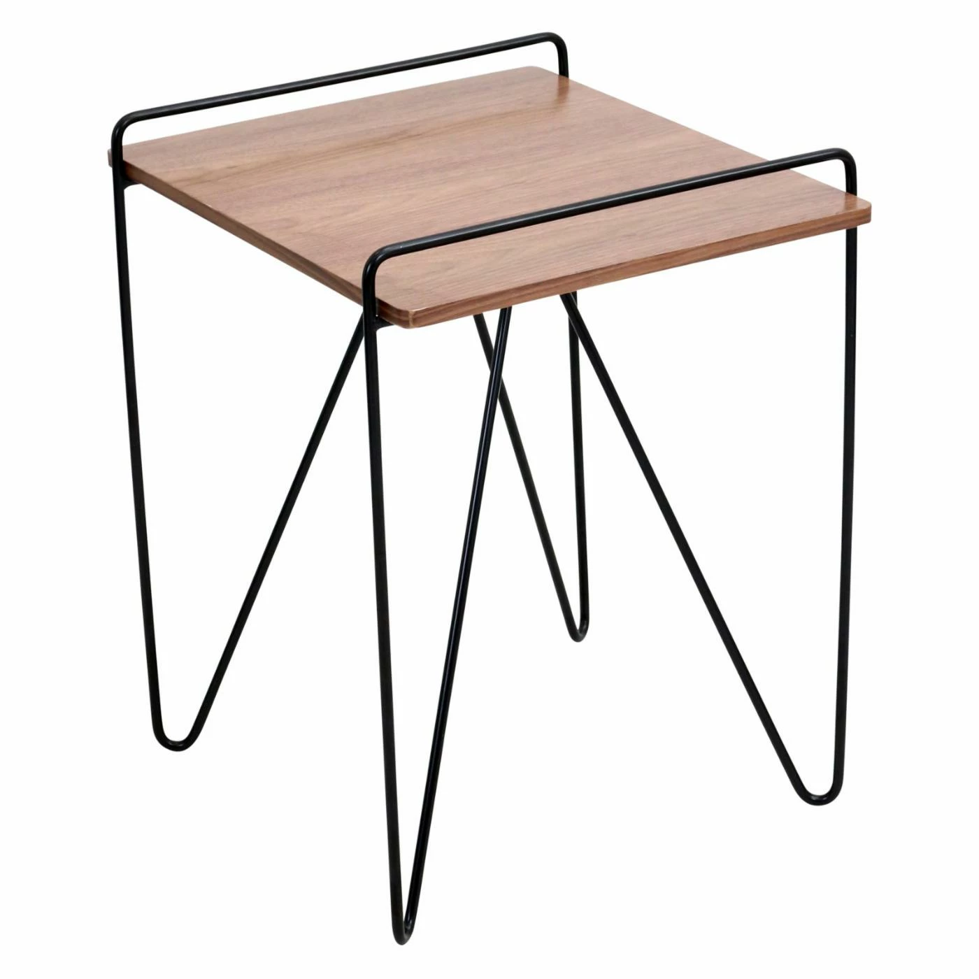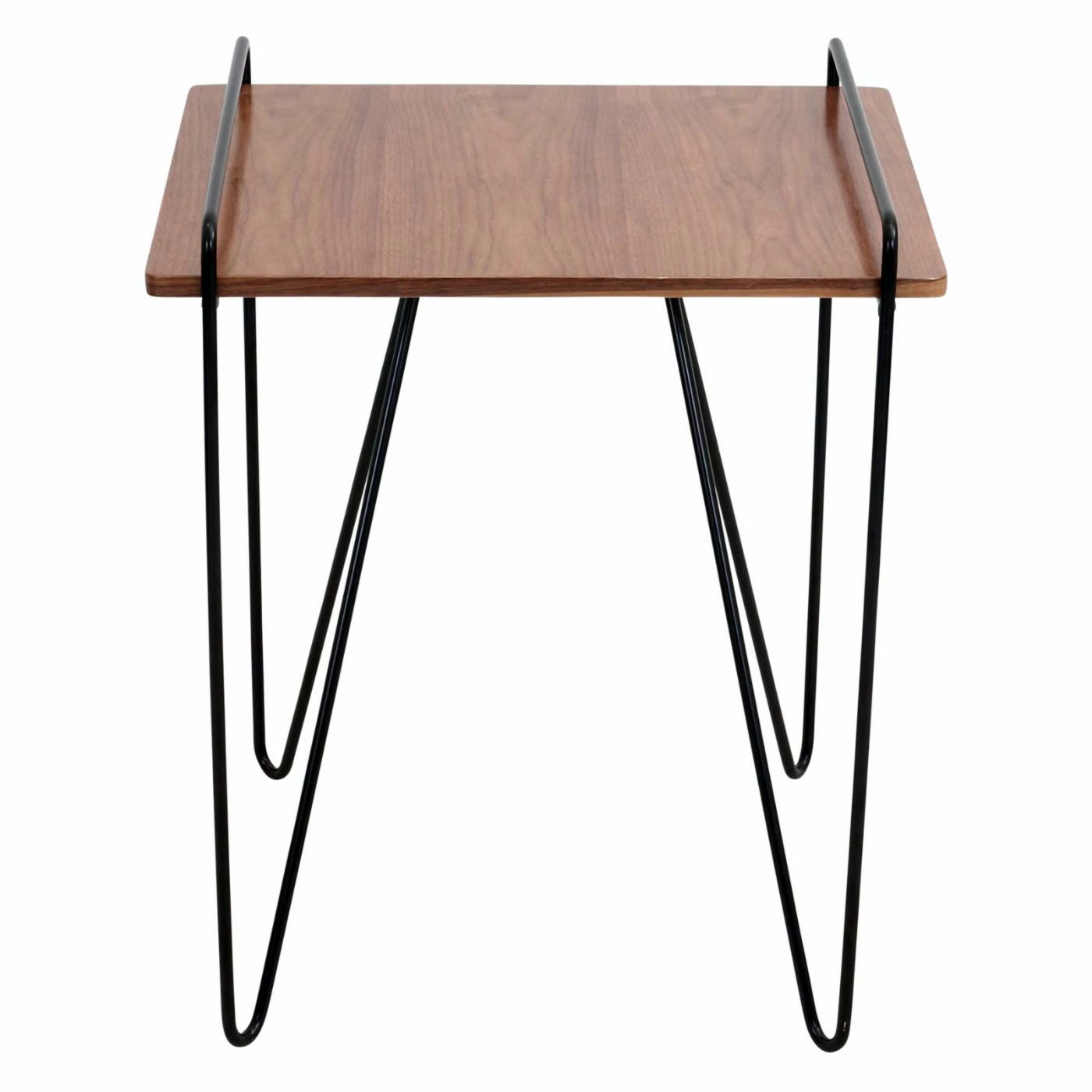 The warmth of natural, wooden tones are combined with the slender precision of steel to produce the LumiSource Loft End Table. This sleek, contemporary piece is constructed from a slab of solid, walnut-finished hardwood with that’s supported on metal hairpin legs. The legs are coated in jet black, and provide a chic contrast to the tight-grained lumber.