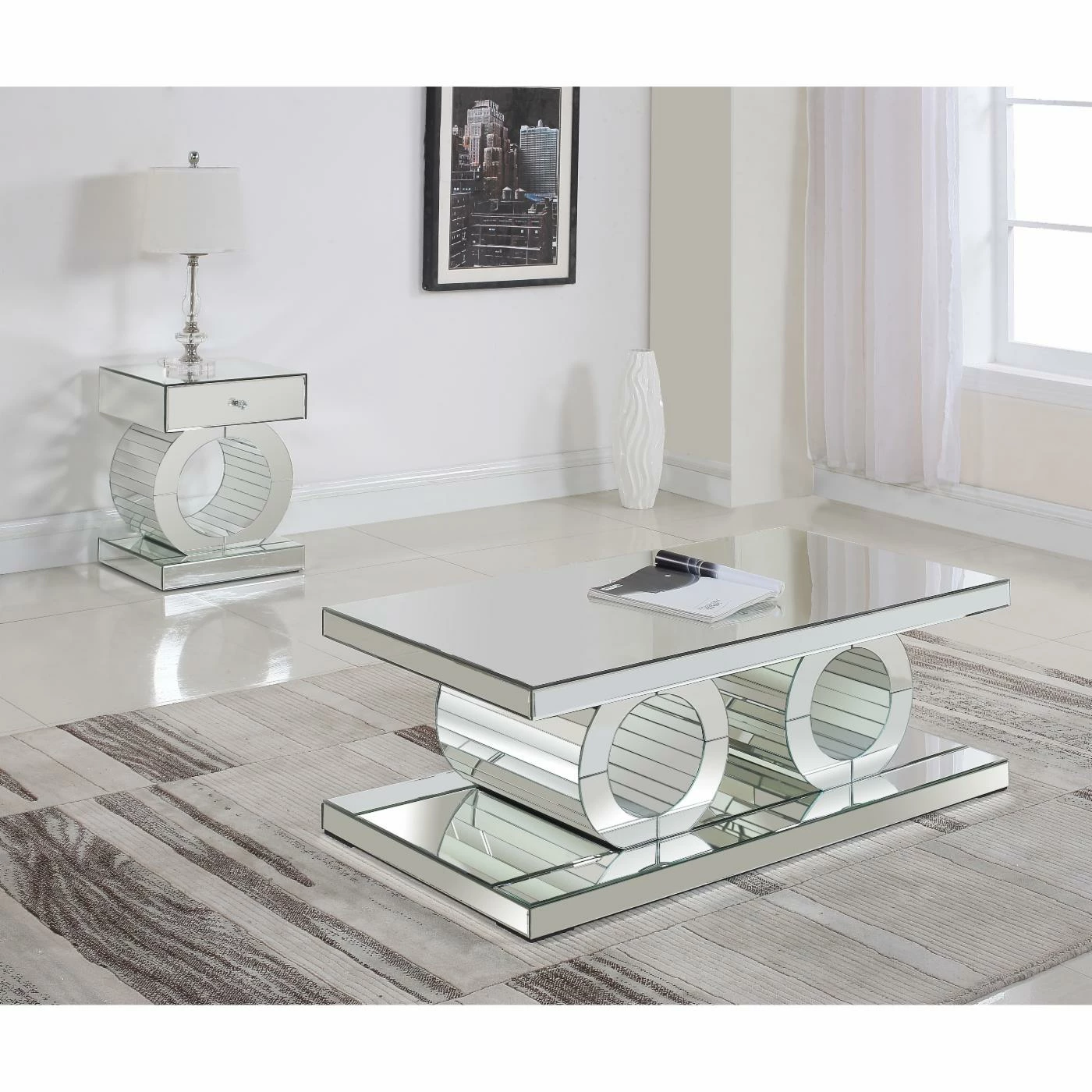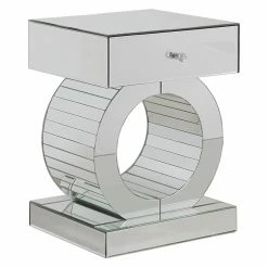 The dazzlingly practical Meridian Furniture Inc Jocelyn End Table is covered in beveled mirrors and offers smart chairside functionality. This end table features a spacious top and roomy drawer perched atop its daringly open ring base. Pair it with the Jocelyn coffee table for a cohesively brilliant look that adds depth and dimension to your living room.