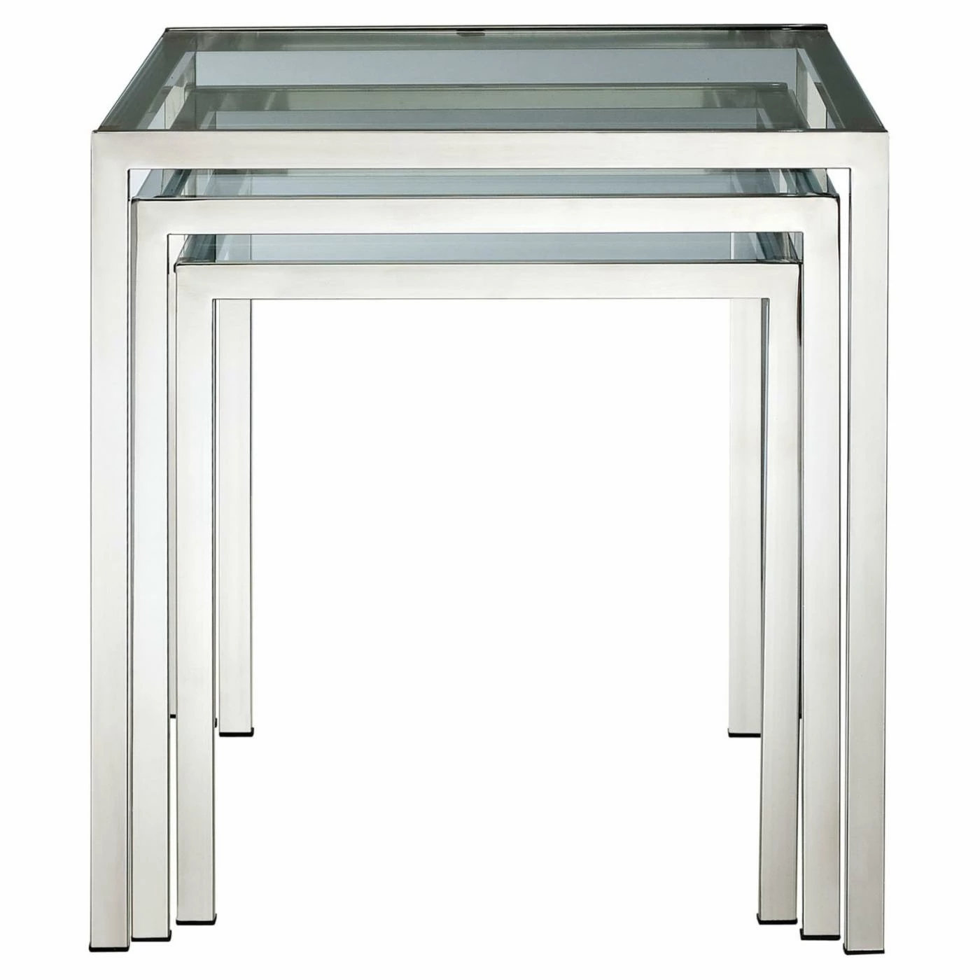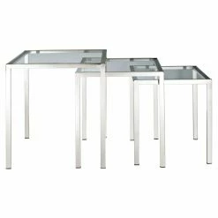 The beautiful, minimalist design of the Modway Nimble Nesting Tables – Set of 3 – Silver is perfect for smaller places. With nesting tables, you can easily keep each table stored when not in use and pull them out when you have company. They also give you a quick and easy way to change the look of your home. Each table’s shimmering stainless steel frame perfectly sets off the tempered glass top and creates a look that is modern and sophisticated.