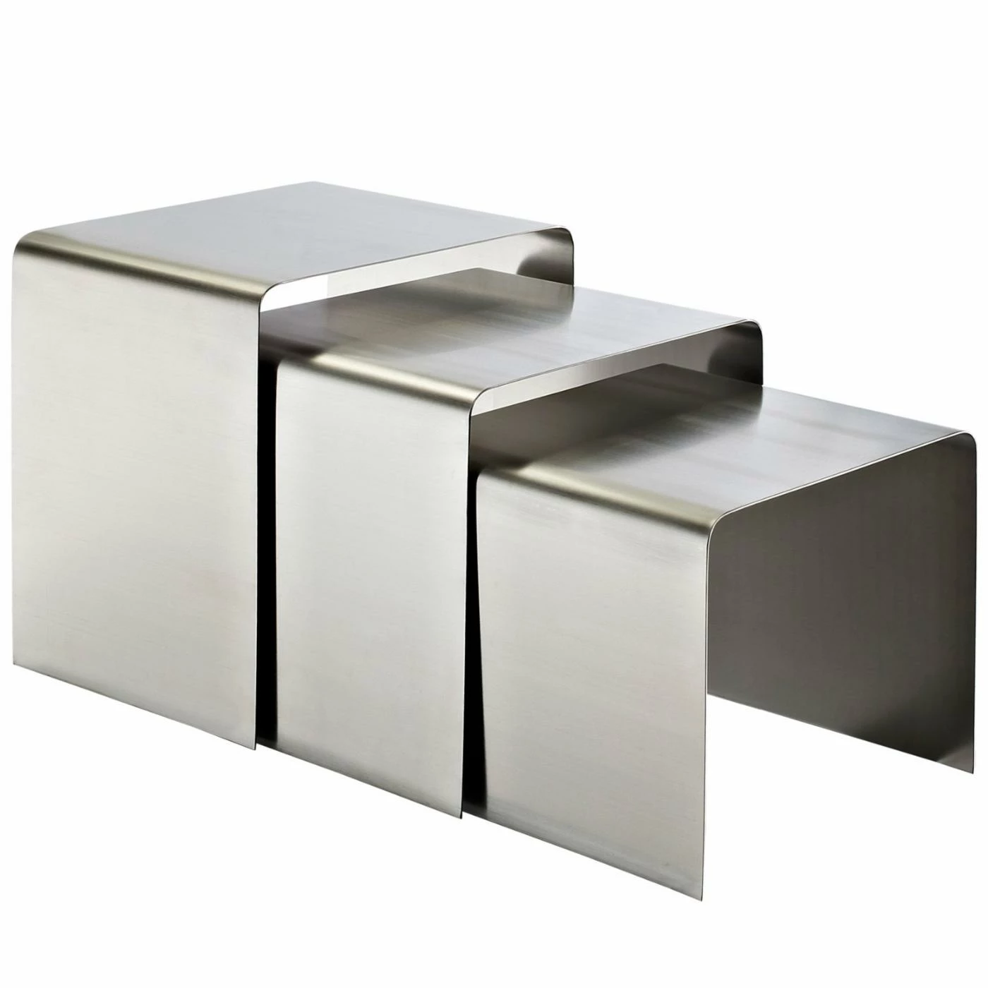 Lightweight, yet sturdy, the Modway Rush Nesting Table – Silver makes a beautiful, modern addition to any living room or office. This set of three tables has a nesting design for easy storage, and a simple brushed finish to enhance any decor.