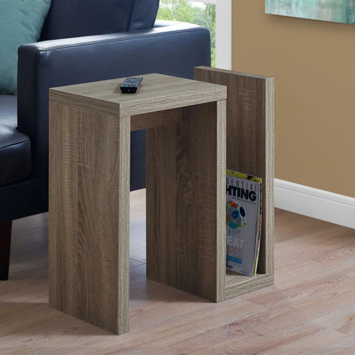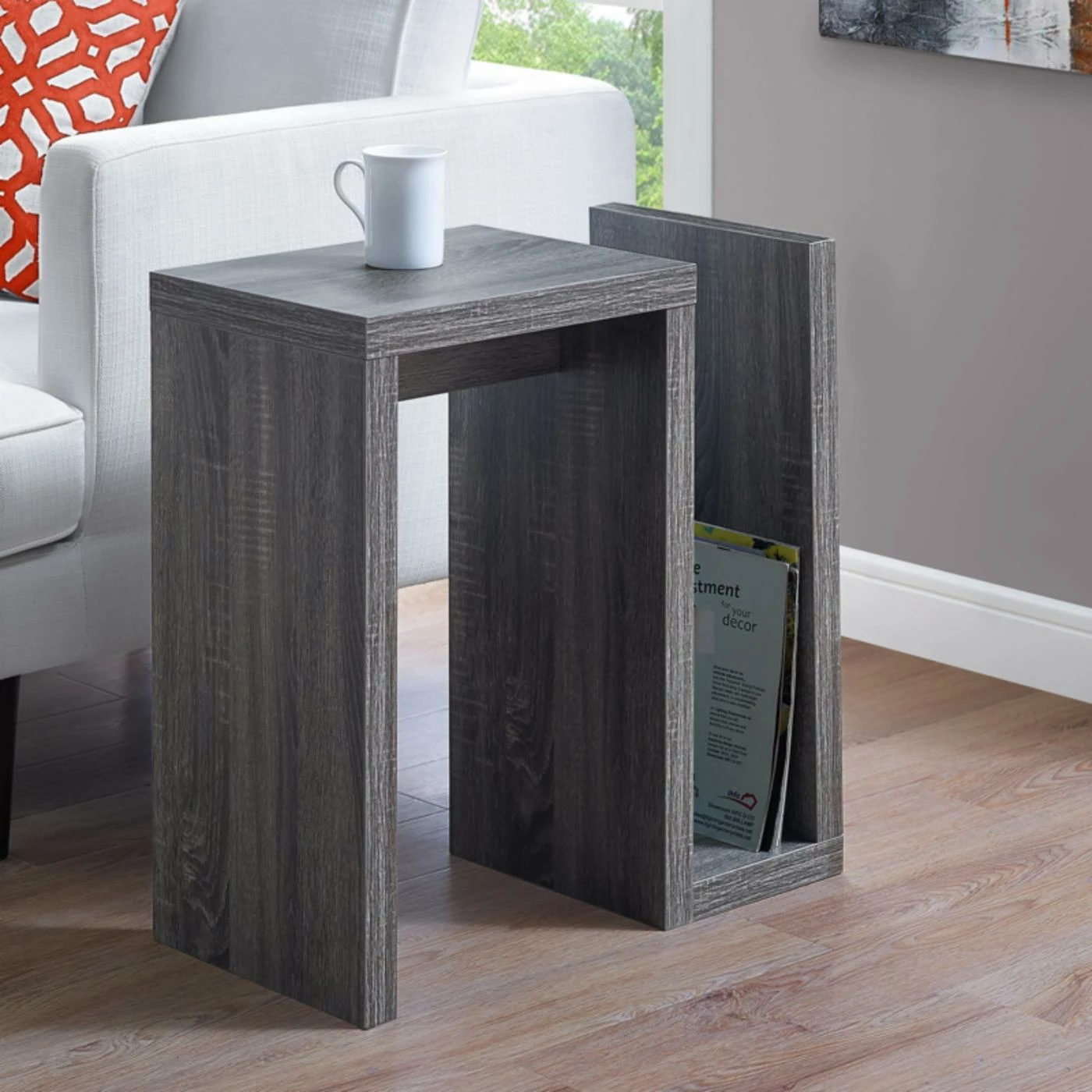 The hip, modern-looking Monarch Specialties Rectangular Chairside Table with Magazine Rack is a great option for enlivening your living room’s decorative scheme. Use it as both a handy spot for your drink and remote control and a storage space for your magazines or a blanket. No matter how you use this end table, you can’t go wrong.