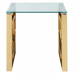 Give your living area an elegant, refined look with the addition of the !nspire Stainless Steel Block Design End Table. This square side table is constructed of stainless steel and features a gleaming finish in your choice of available color. The tempered glass top enhances the minimalist design.