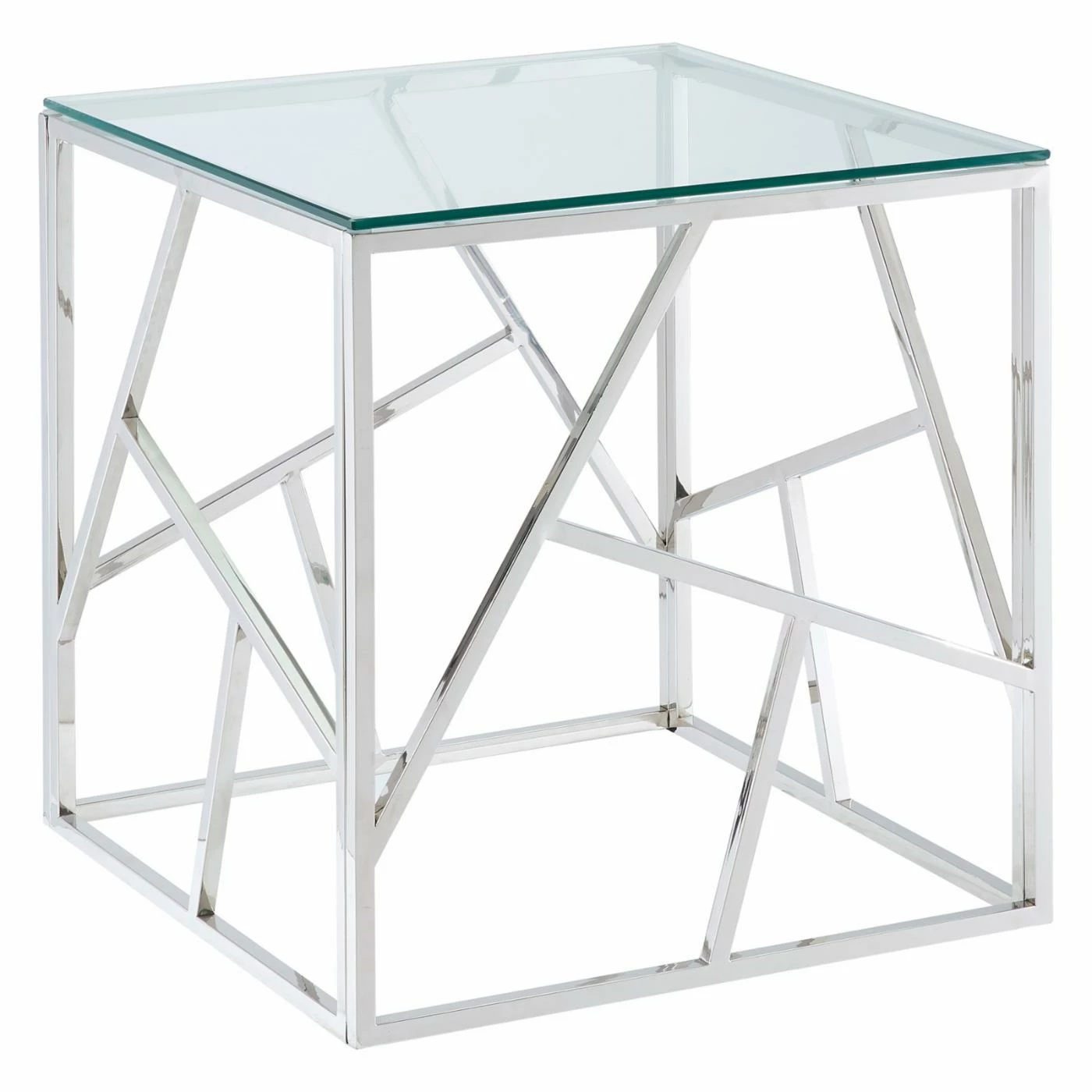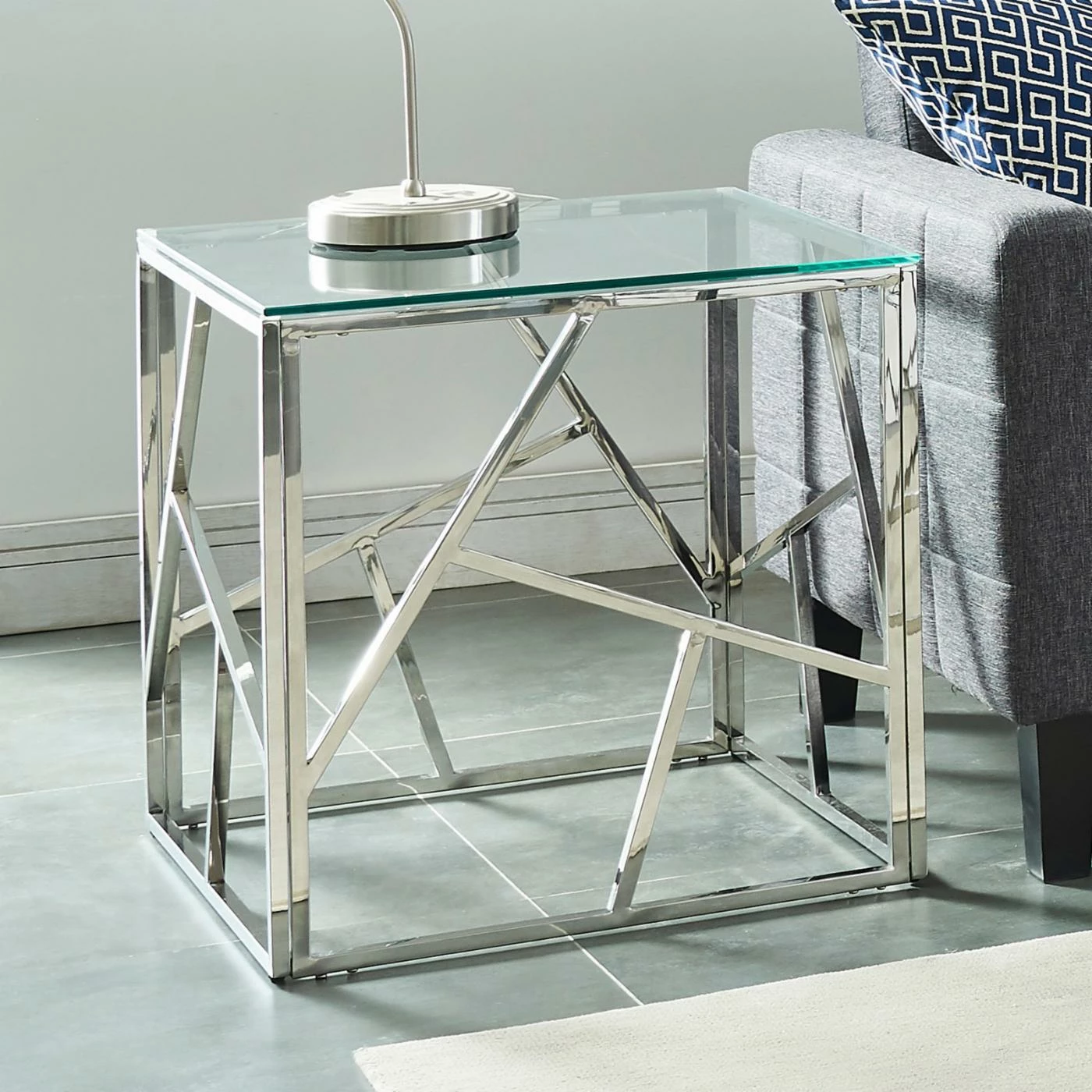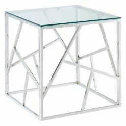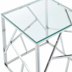 Complete your glamorous sitting area by adding the !nspire Stainless Steel Line Design End Table. This chic accent table offers a durable stainless steel construction with a gleaming chrome finish. The thick, tempered glass top coordinates with all styles of dΓ©cor.