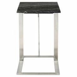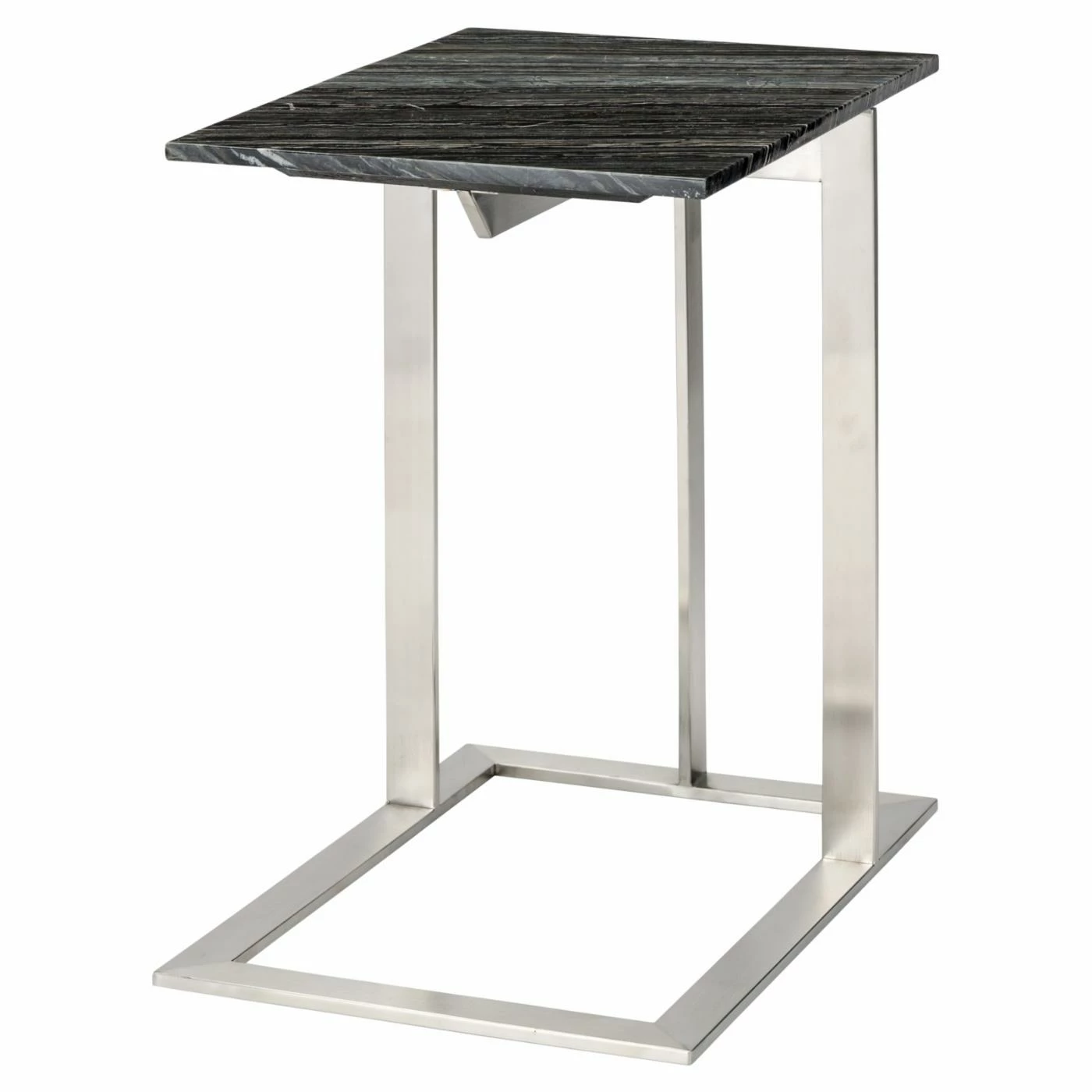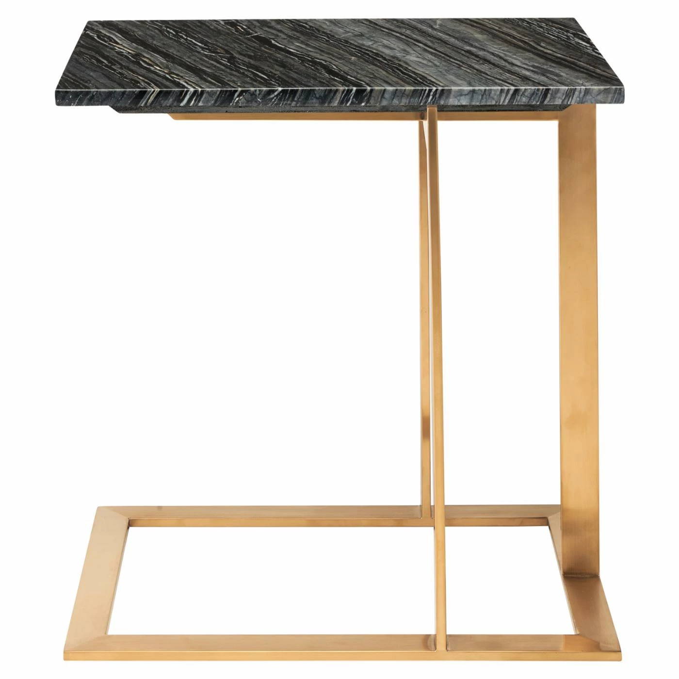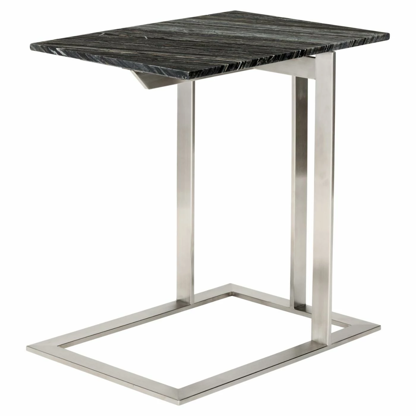 The Nuevo Dell Chair Side Table boasts an intriguing asymmetrical design that’s sure to wow. The sleek and sturdy metal frame features a one-sided design that drives home the modern aesthetic. The smooth marble tabletop is perfect for a lamp or stacking magazines and books. This side table is offered in multiple finish options.