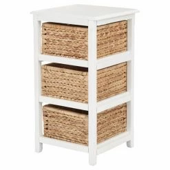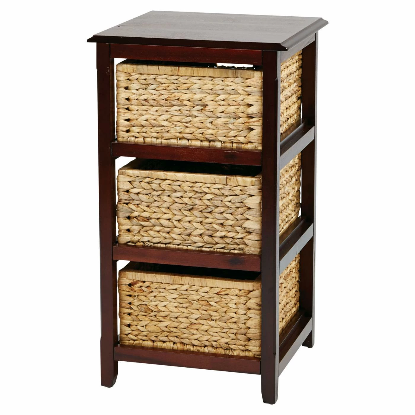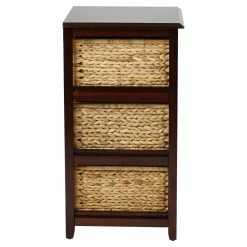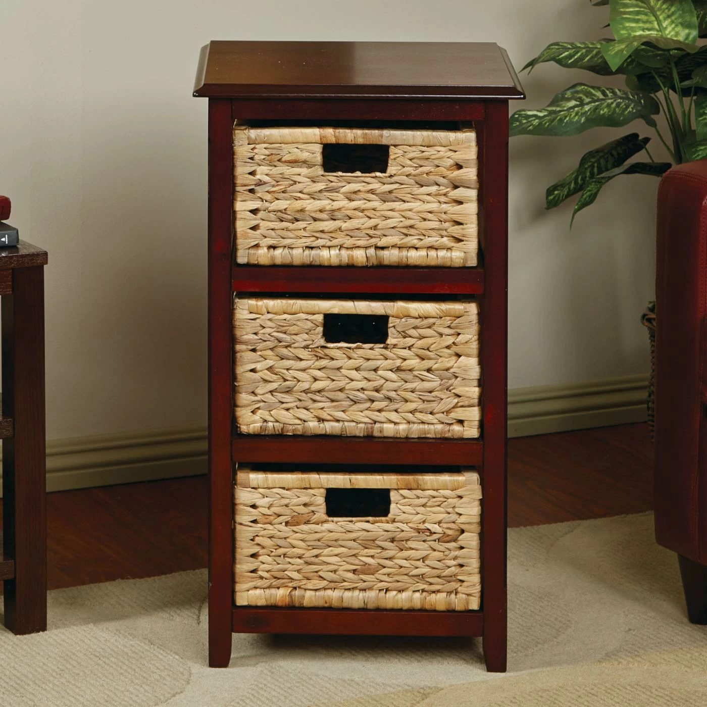 Give yourself plenty of stylish storage with the OSP Home Furnishings Seabrook Rectangle End Table with 3 Baskets. This versatile design features a wood and veneer-constructed frame in your choice of available finishes, along with three hand-braided, seagrass baskets. This on-trend piece works brilliantly in any room and with any dรฉcor style.