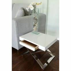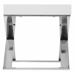 Though short in stature, the Pangea Home X-Leg End Table aspires to the pinnacle of modern style. This side table excels as a sidekick for your contemporary sofa, or as a soothingly sleek nightstand. Grasp the bottom lip of the clean, blank drawer front to access a bit of storage space. The X base has sled legs and is crafted of steel in a polished-to-perfection finish.