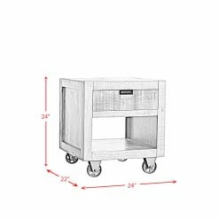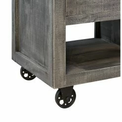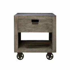 The Picket House Furnishings Micah Square Storage End Table will bring together your living area. Crafted of solid pine wood and engineered wood. Features one drawer that is perfect for storing remotes and magazines near. Display your favorite home décor or pictures on the lower shelf. It also features casters for easy mobility, you can set this end table wherever you choose without the hassle of moving it around. With a grey finish and light distressing throughout, the console exudes farmhouse appeal that is perfect for transitional homes.
