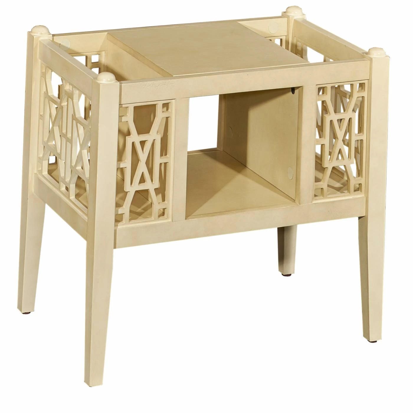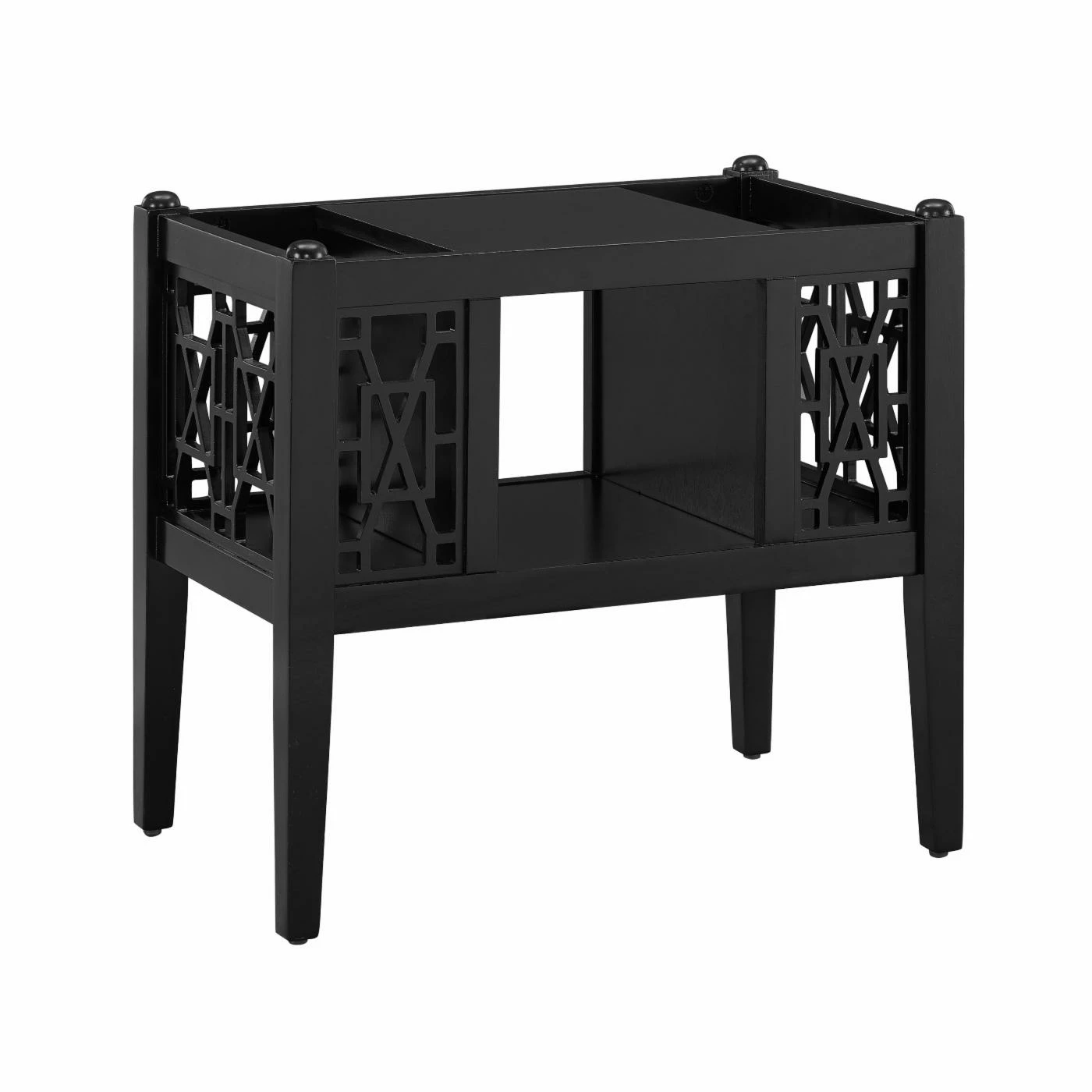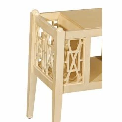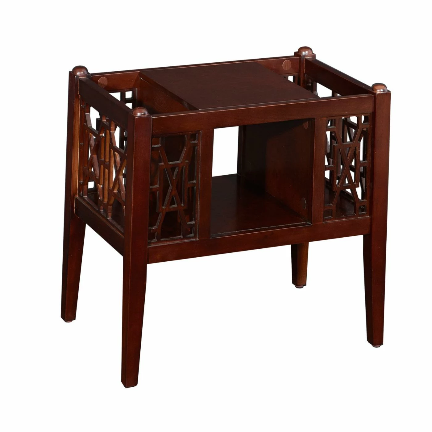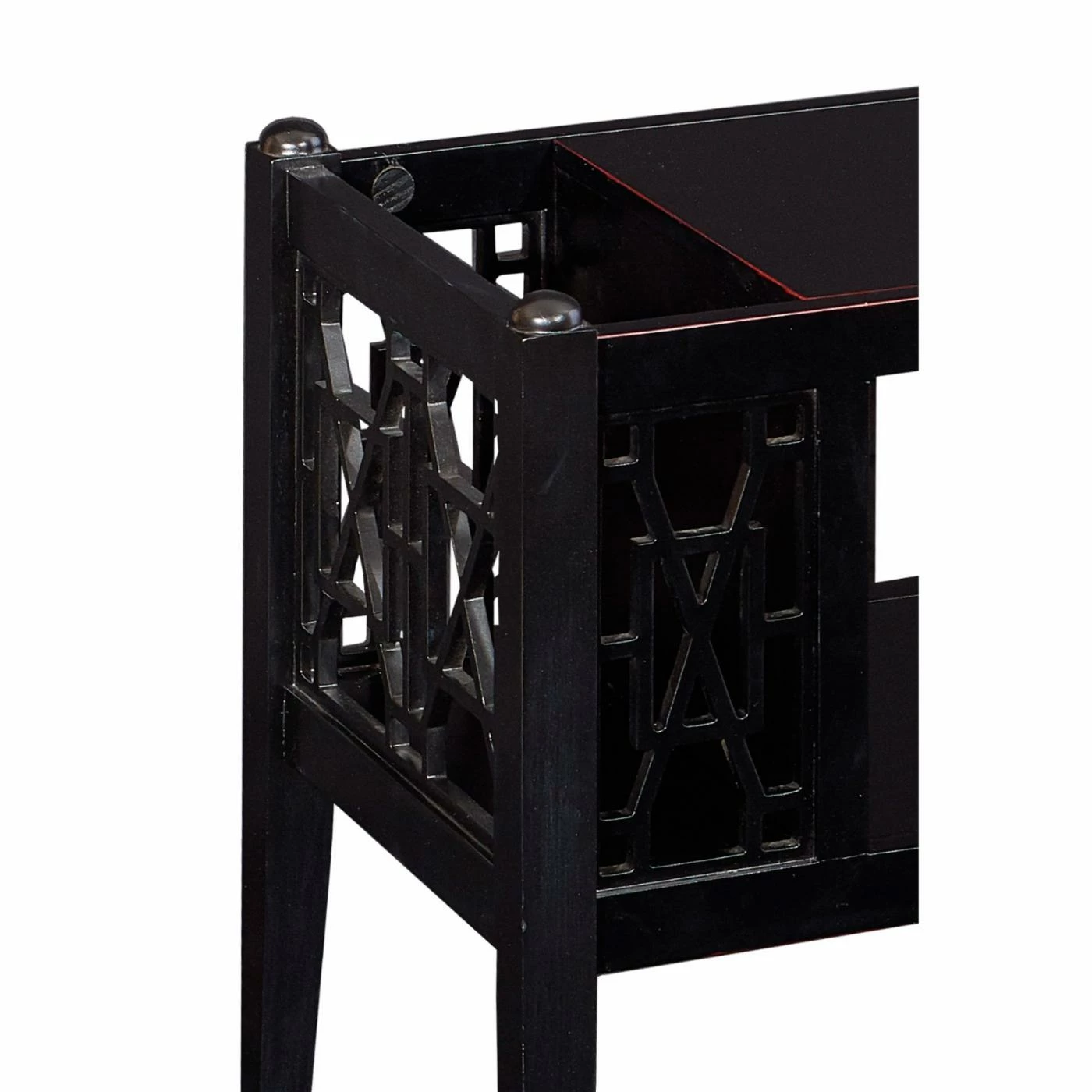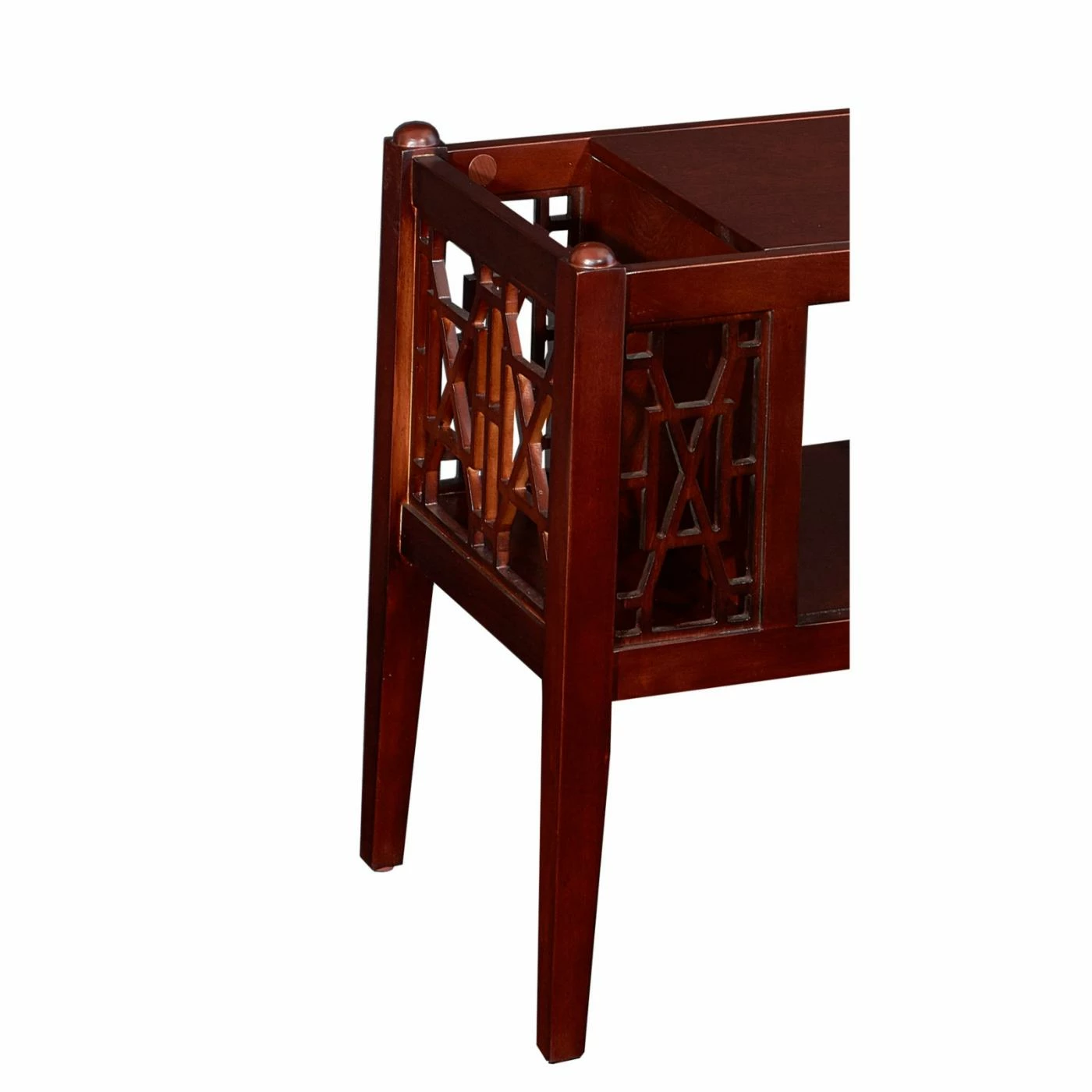 A warm finish, slender legs, and elaborate fretwork on either side of the Powell Layla Magazine Table bring a hint of subtle elegance to your home. This magazine table features an open box-style center and side pockets to hold your favorite reading materials. The smart table-top design is the perfect place to hold a drink or snack plate while you relax and enjoy a new book or magazine. The compact design and taller height of this magazine table reduce the need for deeper bending to find what you’re looking for.