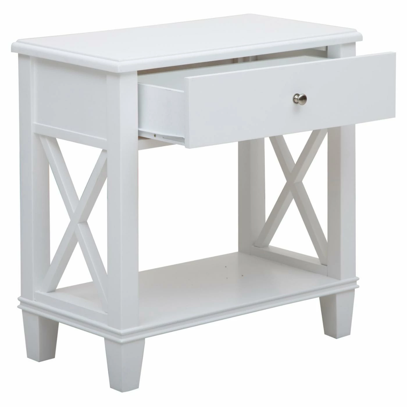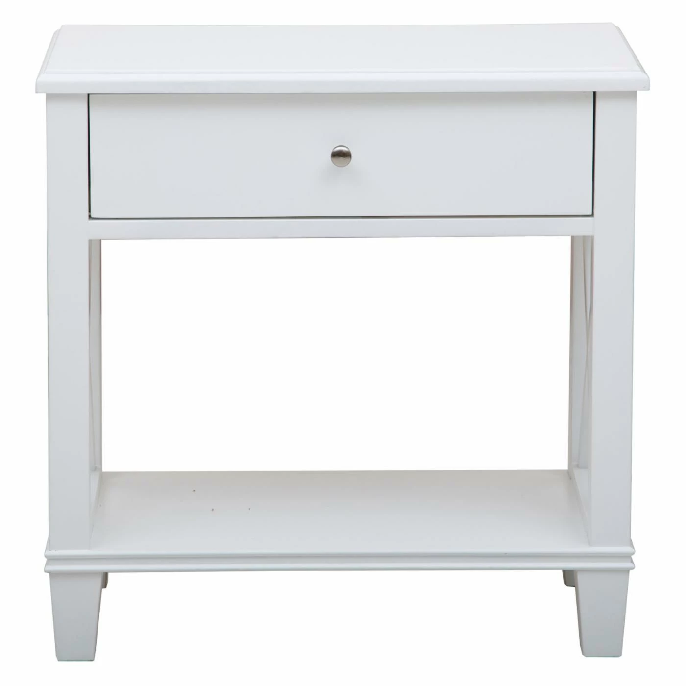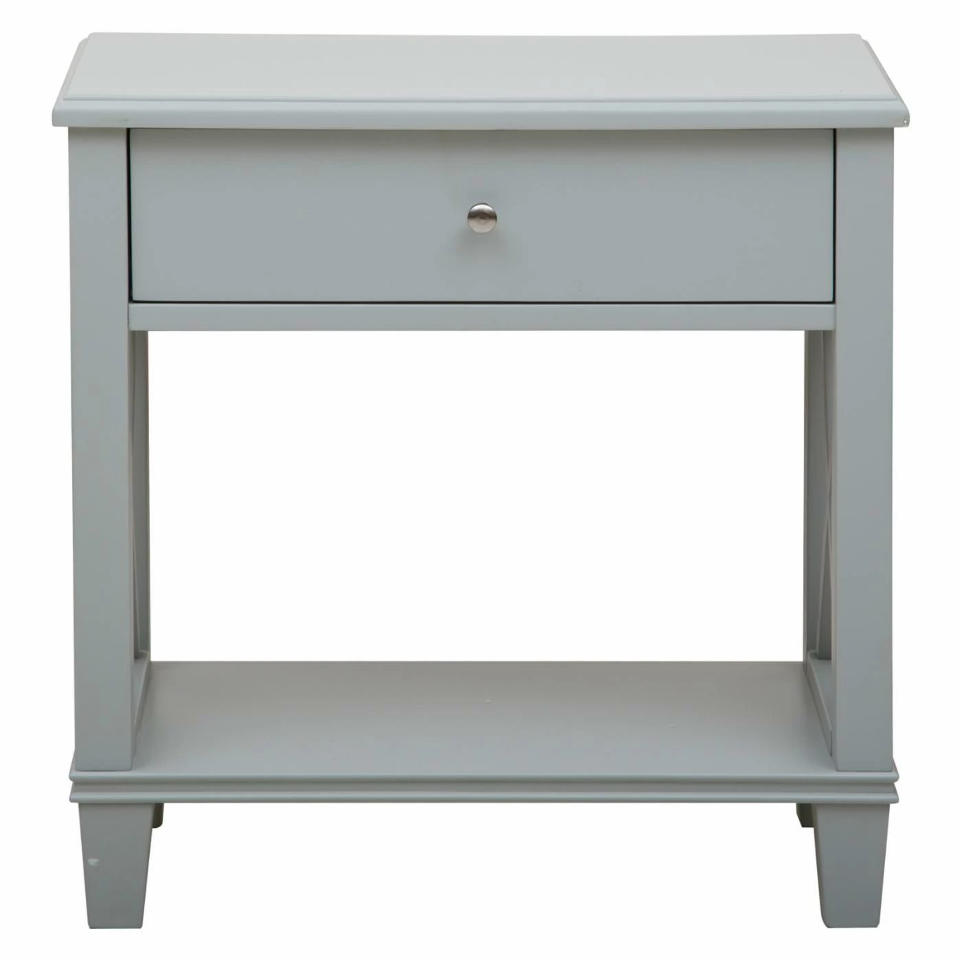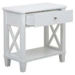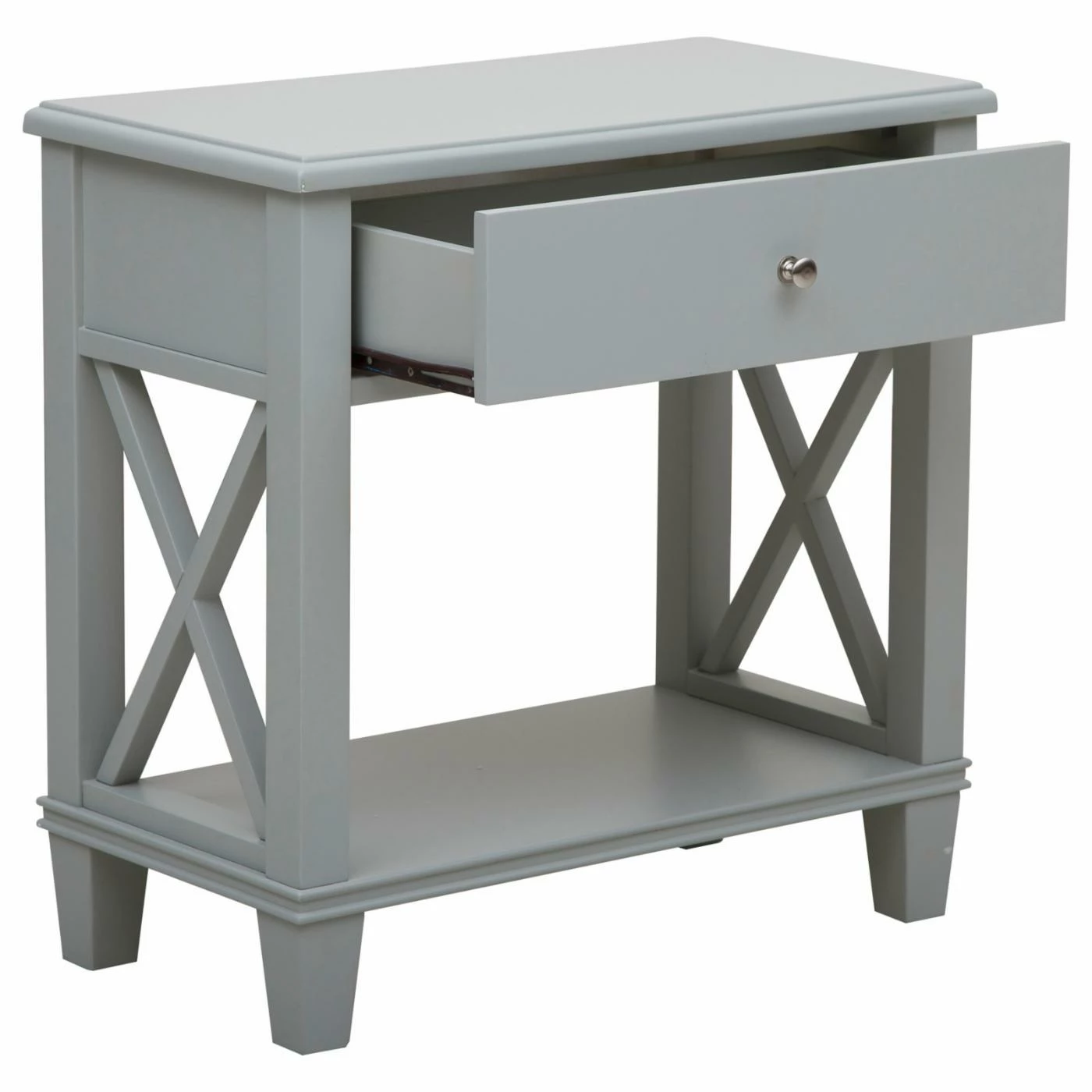 The Right2Home Gray Open X Leg Side Table is the perfect accent to a sofa or armchair. This compact table features a versatile neutral hue. A storage drawer offers concealed storage and shelf provides open storage. The open “X” sides add visual interest to this table.
