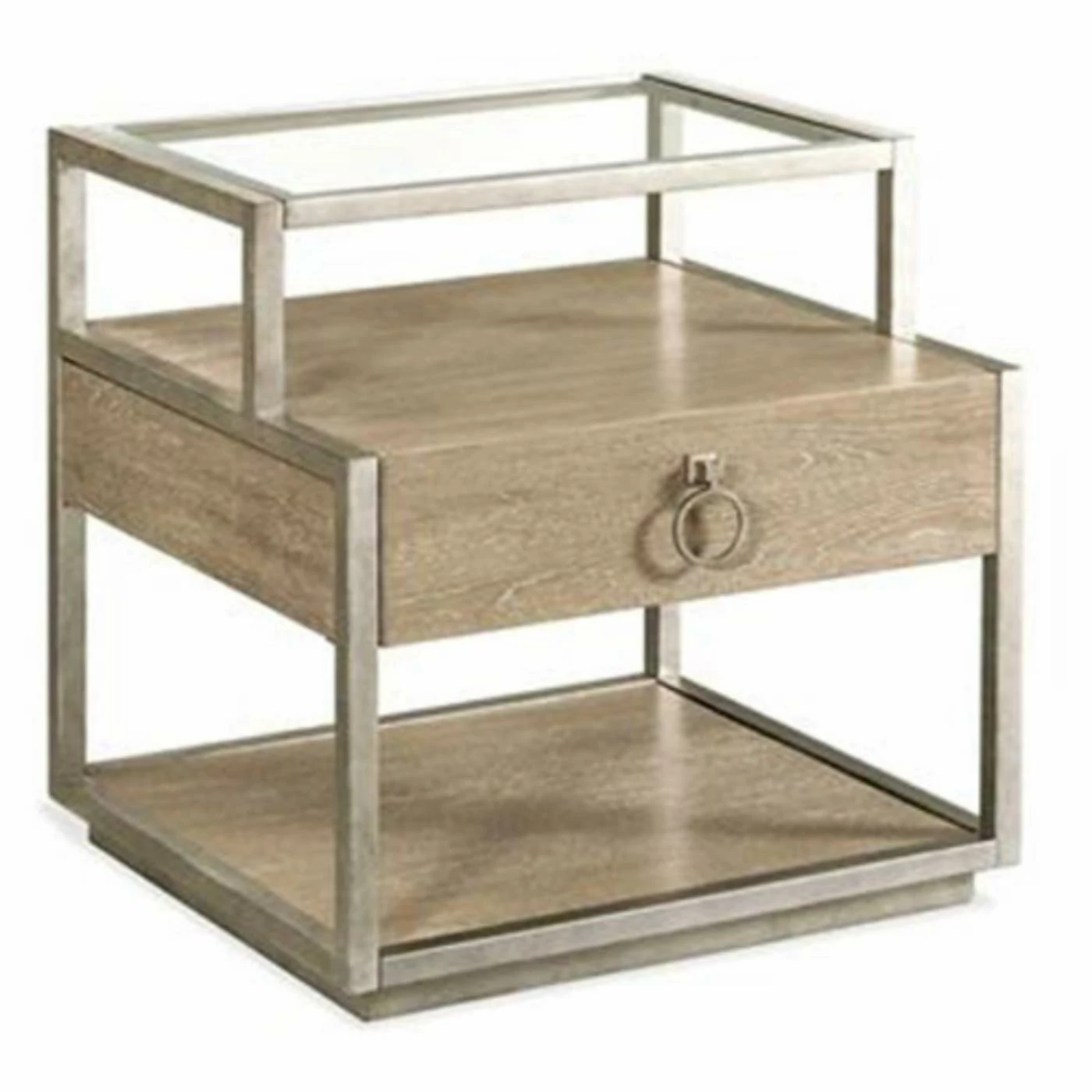 Two tiers and extra storage are what make the Riverside Furniture Sophie Rectangular End Table the perfect choice for your accent table needs. The open shelves are ideal for displaying items while the smooth-rolling drawer keeps items like remotes or glasses neatly out of sight. The contemporary styling boasts a natural finish, metal details, and durable hardware. It’s a table that not only looks great, but is crafted to last throughout the years.
