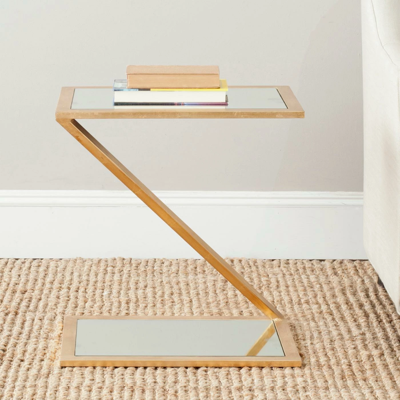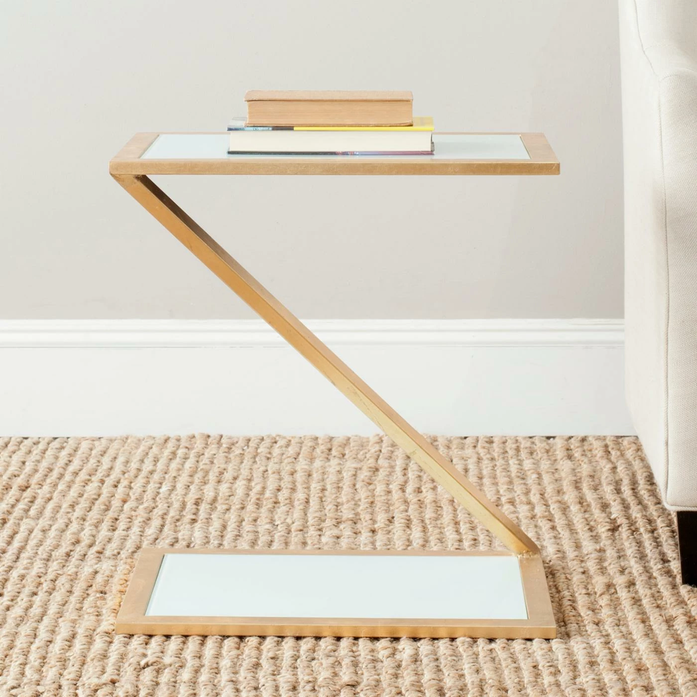 If your home needs the perfect minimalistic touch, look no further than the Safavieh Andrea Accent Table – Gold. The striking ‘Z’ shape base features an unexpected bright gold finish. Your choice of a sleek white glass or mirror top and base provide a gorgeous accent, not to mention the ideal place to set a book or cup of coffee.