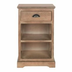 The Safavieh Griffin 1 Drawer Side Table has a flexible design that works as a living room side table or a nightstand in a bedroom. No matter where you place it, you’ll benefit from the two open storage compartments and single drawer. Fashioned out of pine and engineered wood, the sturdy table comes in your choice of available finishes and is completed by a single, metal half-moon pull.