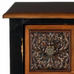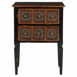 Capturing the elegance and warmth of Spanish Revival style, the Safavieh Kenneth 2 Drawer Side Table is the perfect piece to complete your traditional seating area. The solid birch wood table features two medium brown-finished drawers that are carefully tooled with an ornate scrollwork motif. Three antiqued-iron floral pulls are positioned on each drawer for a sophisticated finishing touch. To give the side table timeworn appeal, the dark brown finish on the frame and grooved legs is lightly distressed.